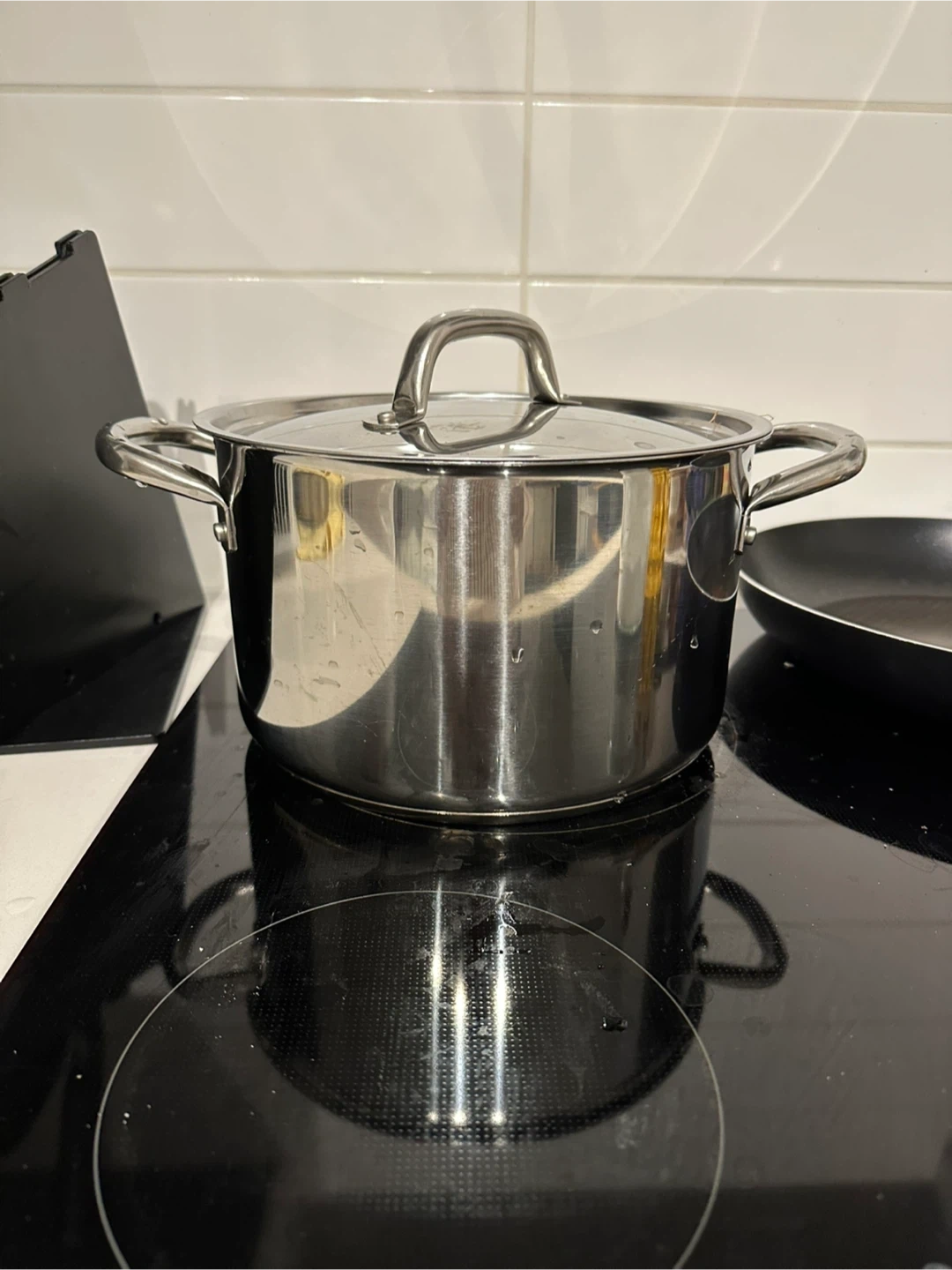 17Looking to sell this stainless steel cooking pot. It comes with a lid and is in great condition, perfect for all your cooking needs!