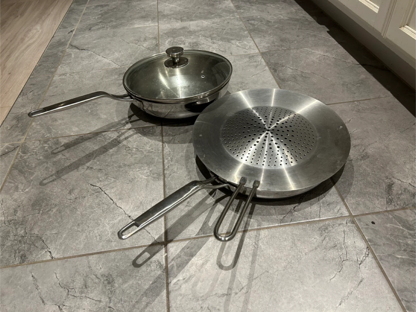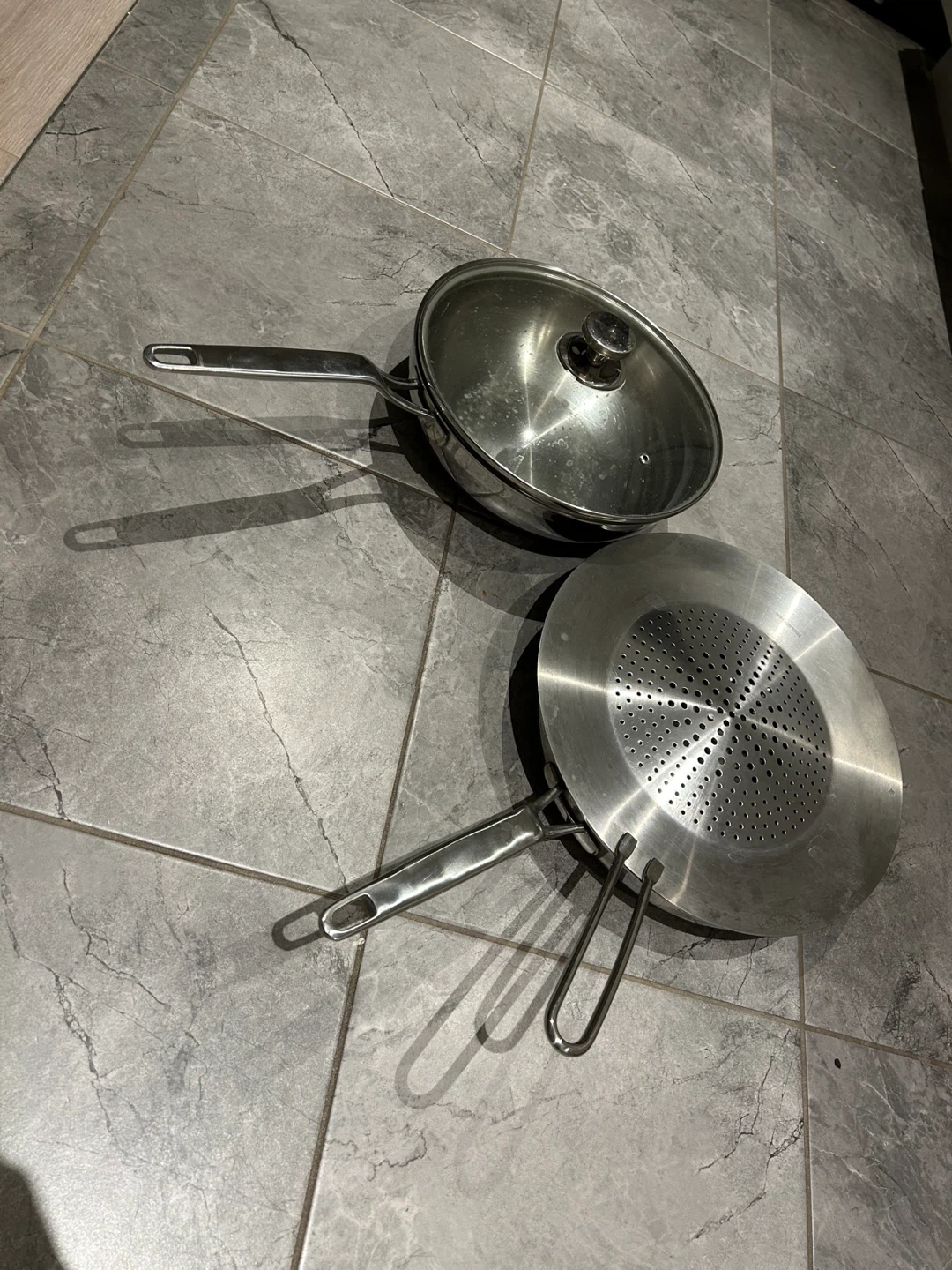 - Selling a stainless steel frying pan and pot set. - Made In Korea - High Quality - Pick Up Only