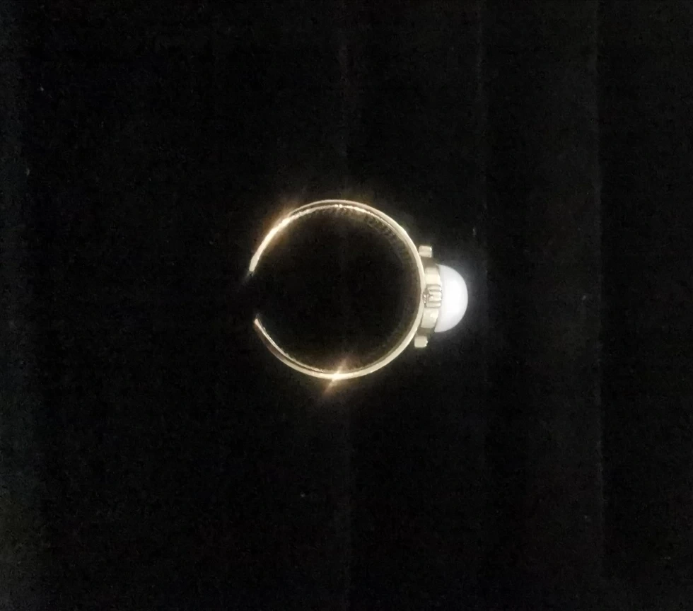 This is a beautiful gold ring featuring a rose quartz stone. It's in excellent condition and ready to add a touch of elegance to your style! The ring measures approximately 1.4cm in height and 1.9cm in width, with a weight of 5.8g. Adjustable Size. Comes on a matte black ring box and matching to size gift bag.