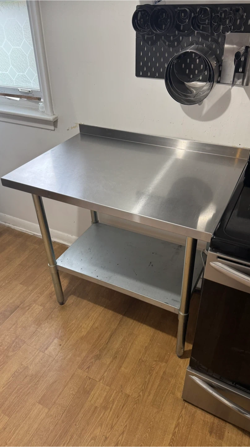 23Selling a stainless steel kitchen work table. It's in good condition and ready for a new home! Perfect for adding extra prep space in your kitchen or workspace. It has a lower shelf for additional storage too