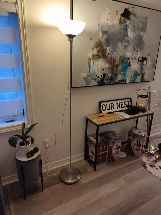 31Stainless steel floor lamp with on/off switch in good condition for only $40. Feel free to message if you have any questions!