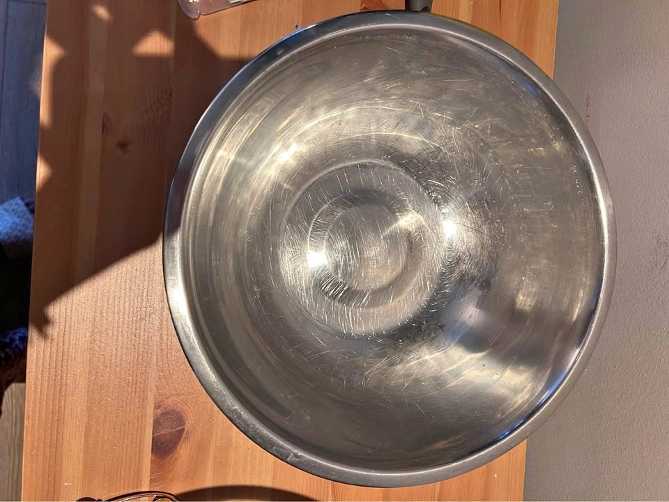 Selling a stainless steel mixing bowl. It's in good condition and ready for all your baking and cooking needs! It's the perfect size for whipping up a batch of cookies or tossing a salad. Pick up - bay and temperance