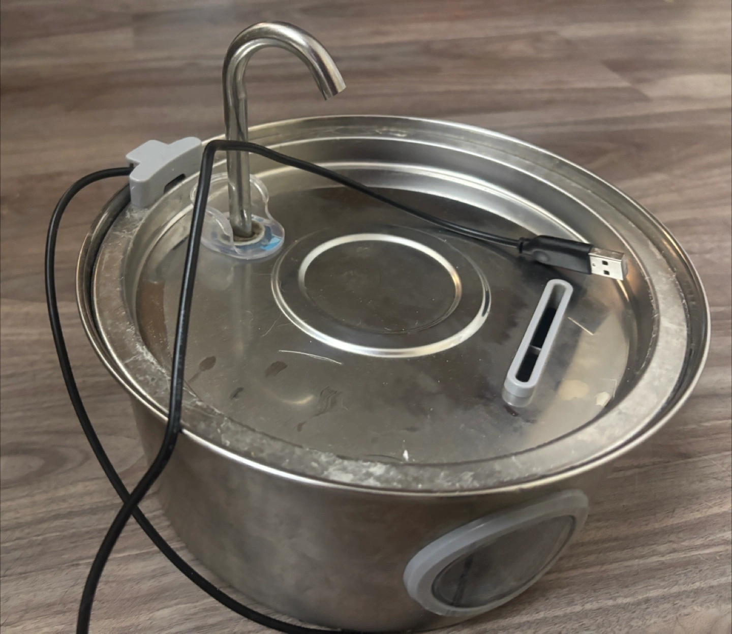 26Stainless Steel Pet Fountain It's in great condition and ready to keep your furry friend hydrated. It features a circulating filtration system to ensure clean and fresh water for your pet. It is easy to clean and maintain, providing a healthy and hygienic drinking option for your pet