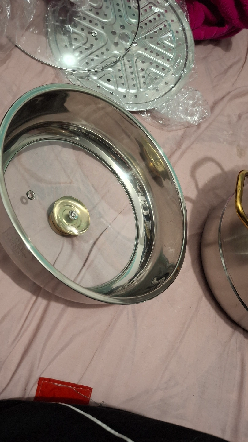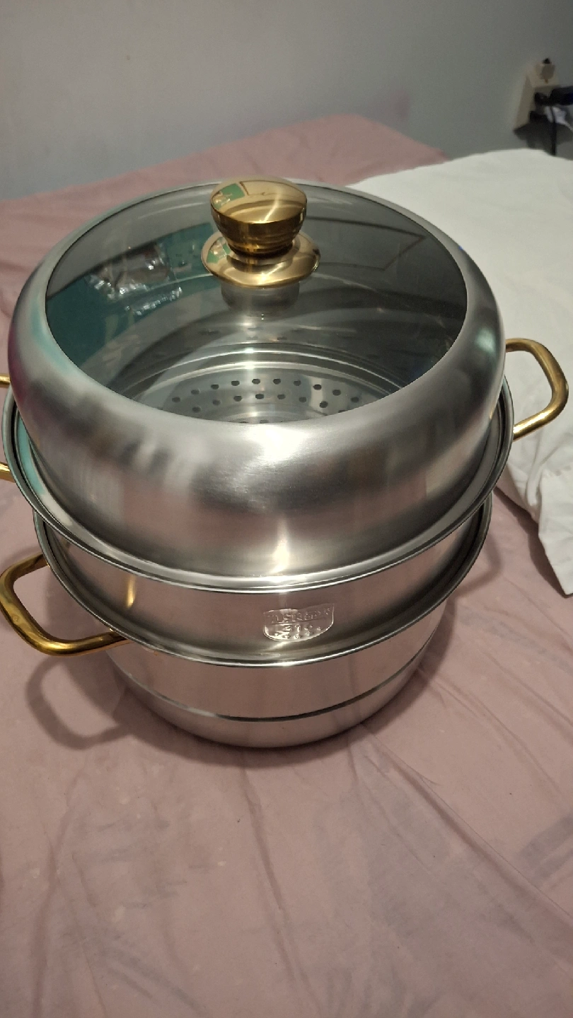 three levels. very roomy. the lid is like a dome. its metal all around but with glass on top for those who like to watch 👀 12" diameter 13" in height new