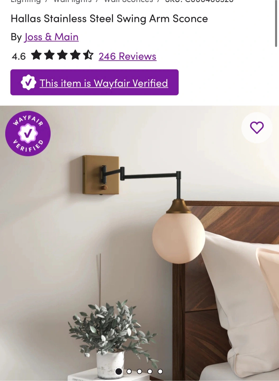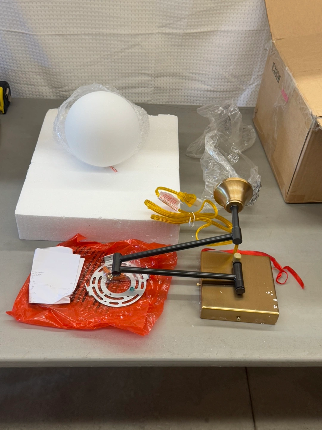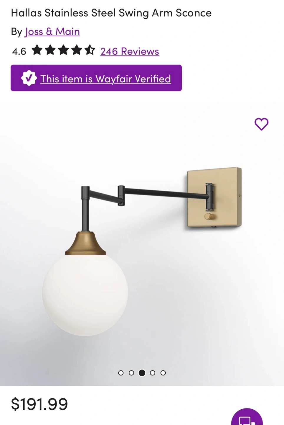 Hallas Stainless Steel Swing Arm Sconce 1 - Light Dimmable Plug - in Swing Arm 18.5” reach multi adjust Retails: $191.99 + tax Asking: $125 Brand new never installed In box and packaging opened for photos Pick Up Waterdown Area