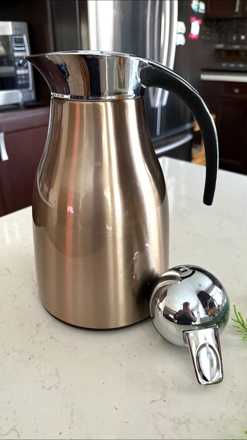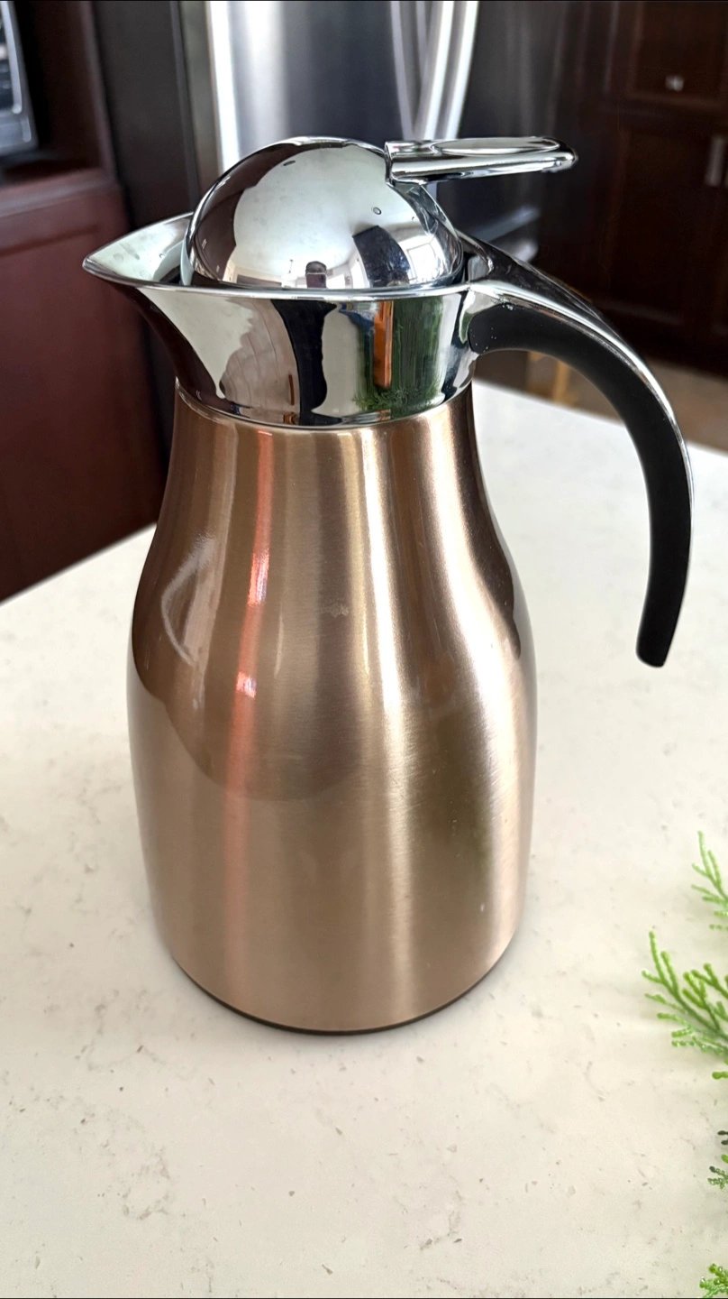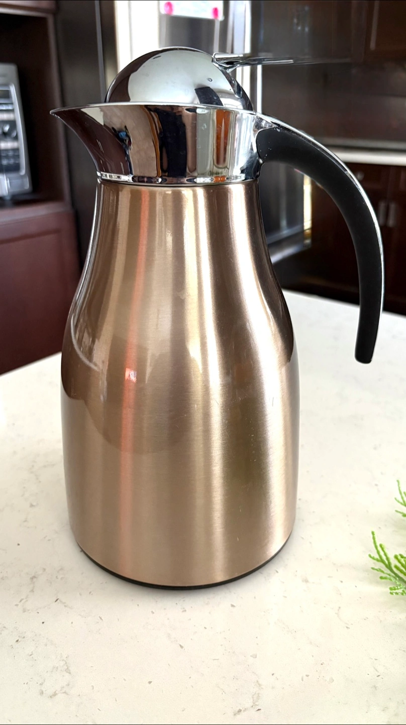 Here's a stainless steel thermal carafe. It's perfect for keeping your beverages hot or cold for hours. It's in great shape and ready to use! Approx 1.5 L