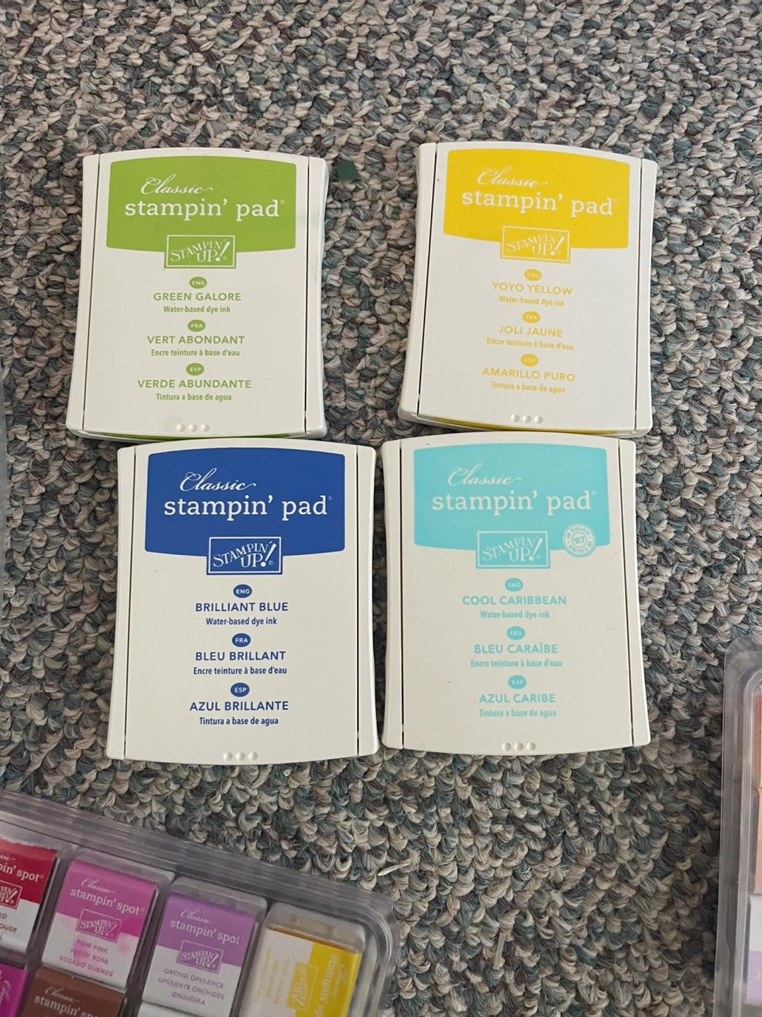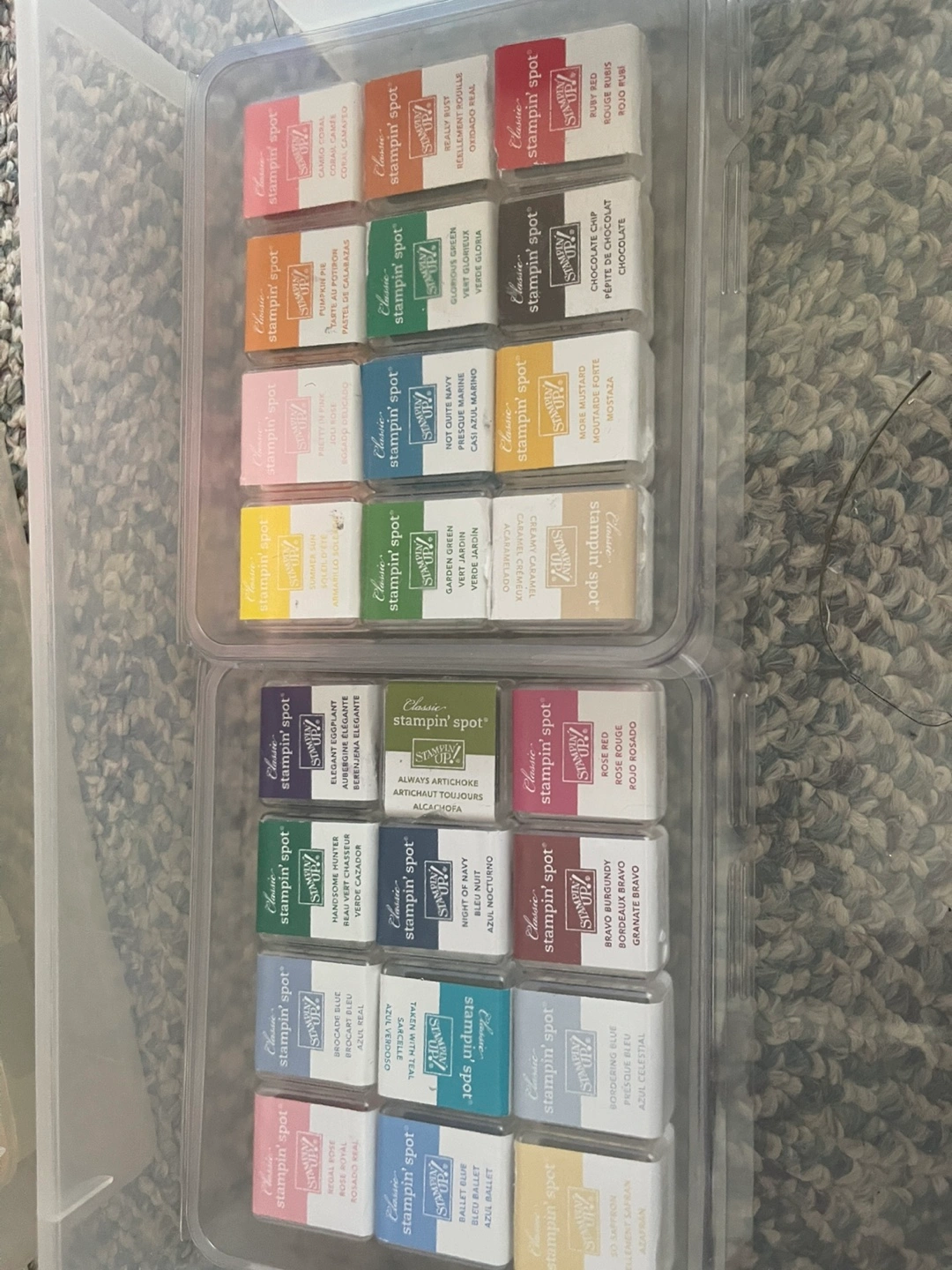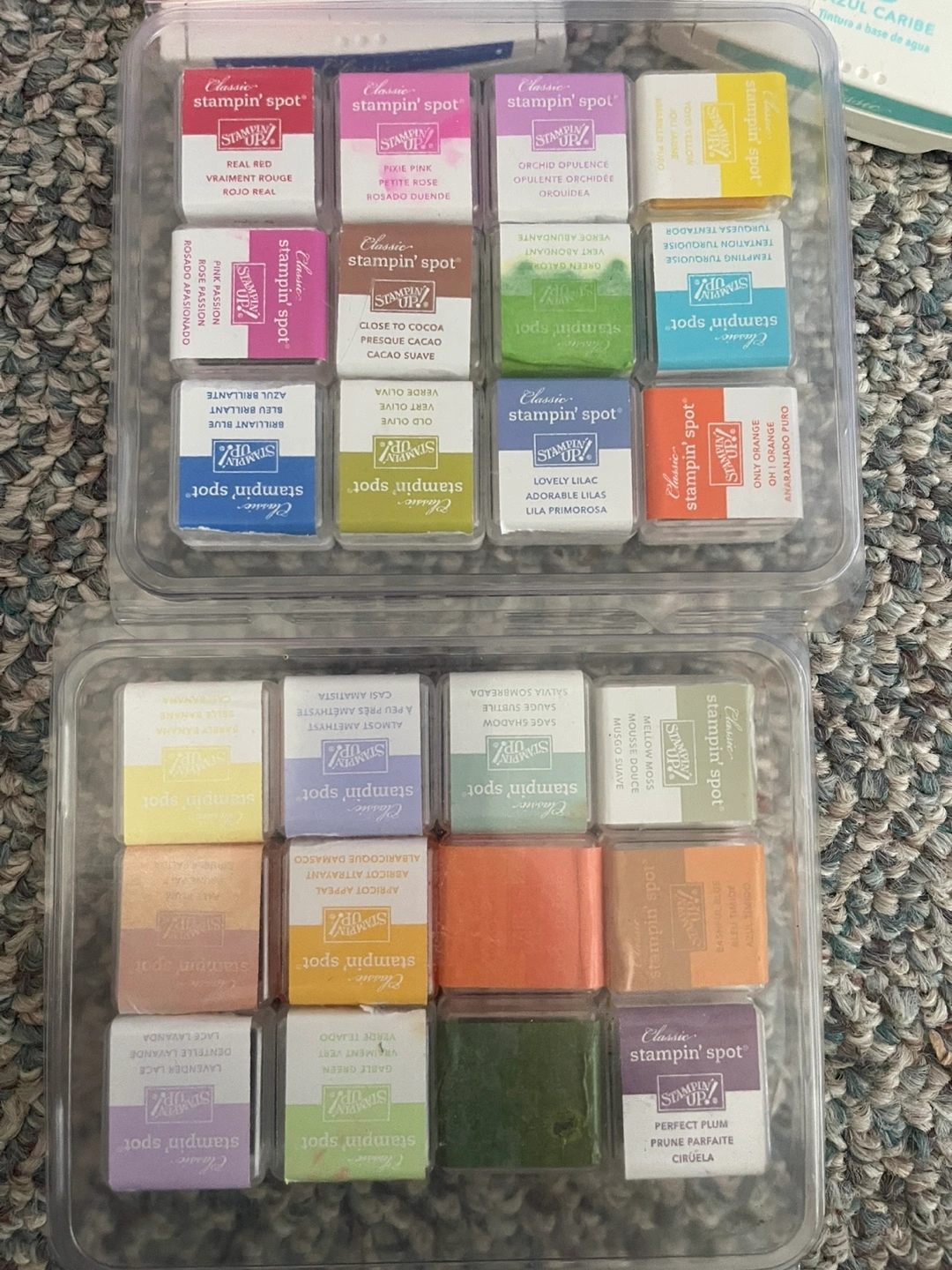 Selling a collection of Stampin' Up! crafting supplies. Includes Classic Stampin' Pads in various colours, Stampin' Spots, and Stampin' Pastels. Perfect for card making and paper crafts! 2 Versamarks ink pads. One was never opened! Also various coloured embossing powders