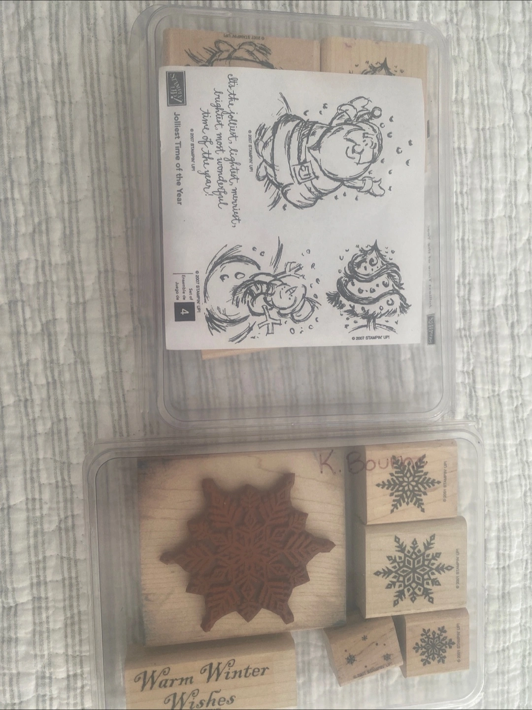 Selling a Stampin' Up! rubber stamp sets, perfect for winter and Christmas crafting! The set includes various stamps with festive designs like snowflakes and winter characters. Great for card making, scrapbooking, and other creative projects! The stamps are in good condition and ready to bring some holiday cheer to your crafts $5 each set