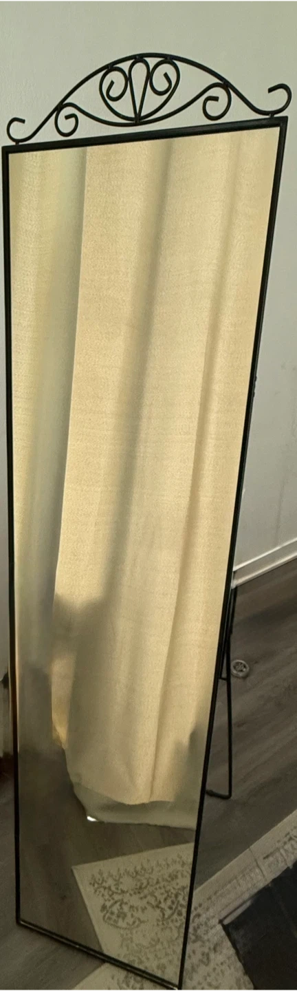10Selling a standing mirror featuring a decorative metal frame! It's in great condition and would look lovely in any room. The frame adds a touch of elegance and the mirror is perfect for getting ready or checking your outfit
