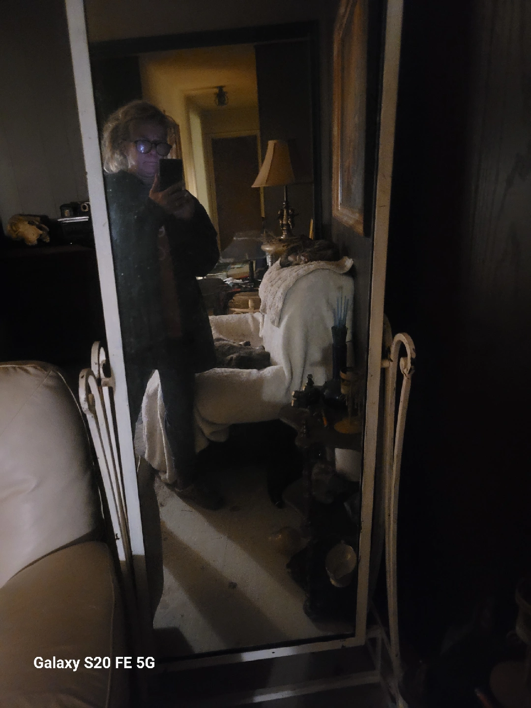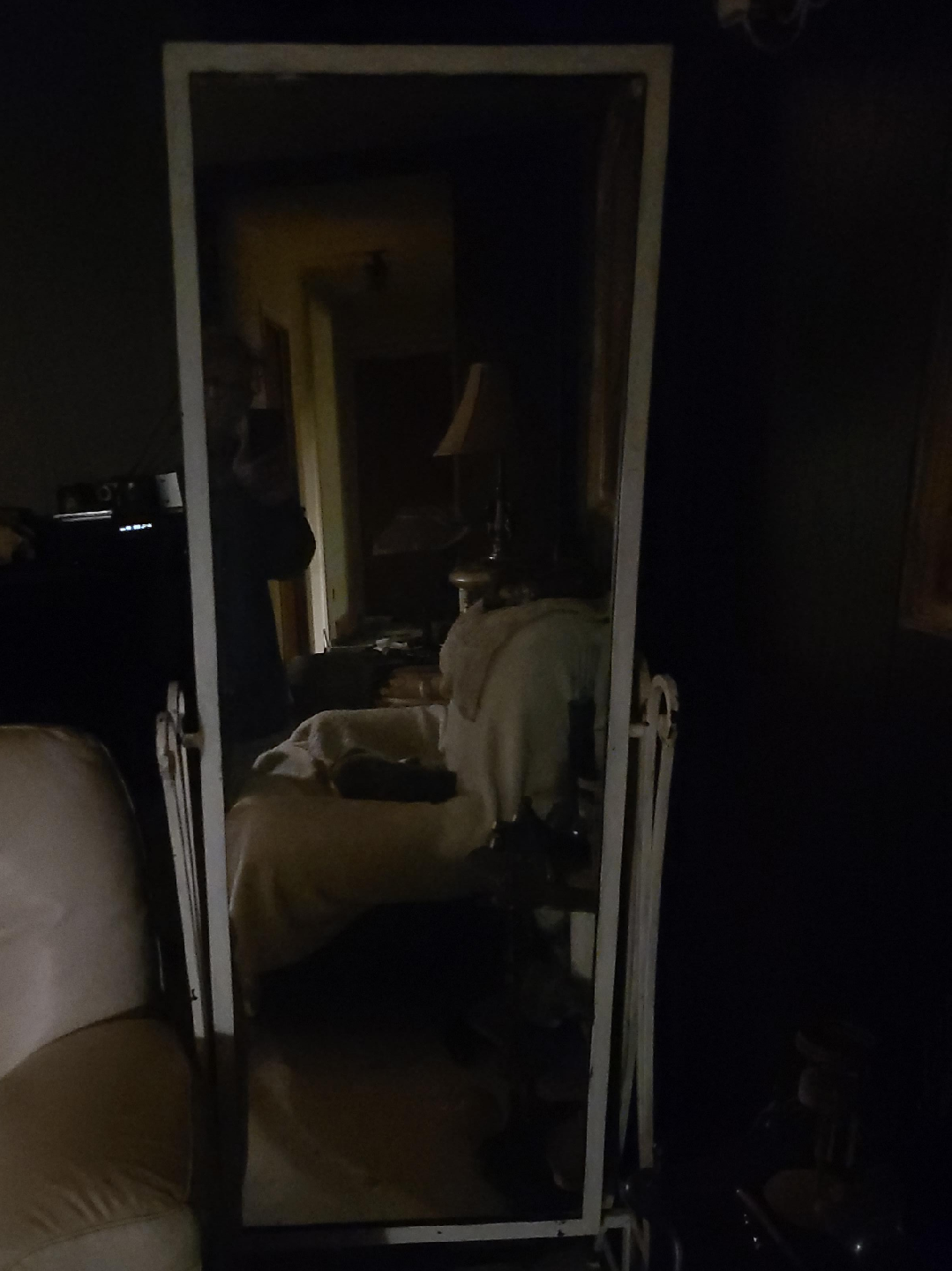 60Selling a standing mirror with a white frame. It's a great addition to any room!