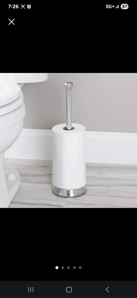 1000+Here's a handy standing toilet paper holder! It has a nice chrome finish and would look great in any bathroom. It's in good condition and ready for a new home. Holds 3-4 rolls