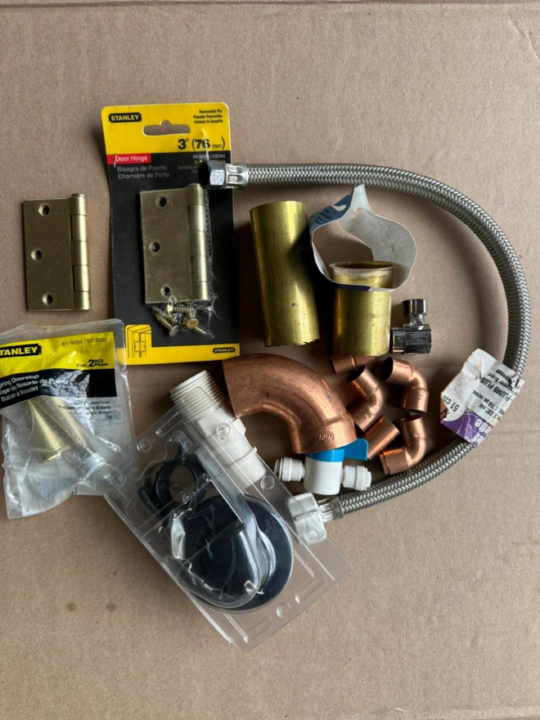 83Selling a collection of Stanley door hinges (3 inch / 76mm) and various plumbing parts. Includes removable pins for the hinges. Also included are some Plumb Plus parts with a 51cm braided hose. Great for DIY projects or repairs!