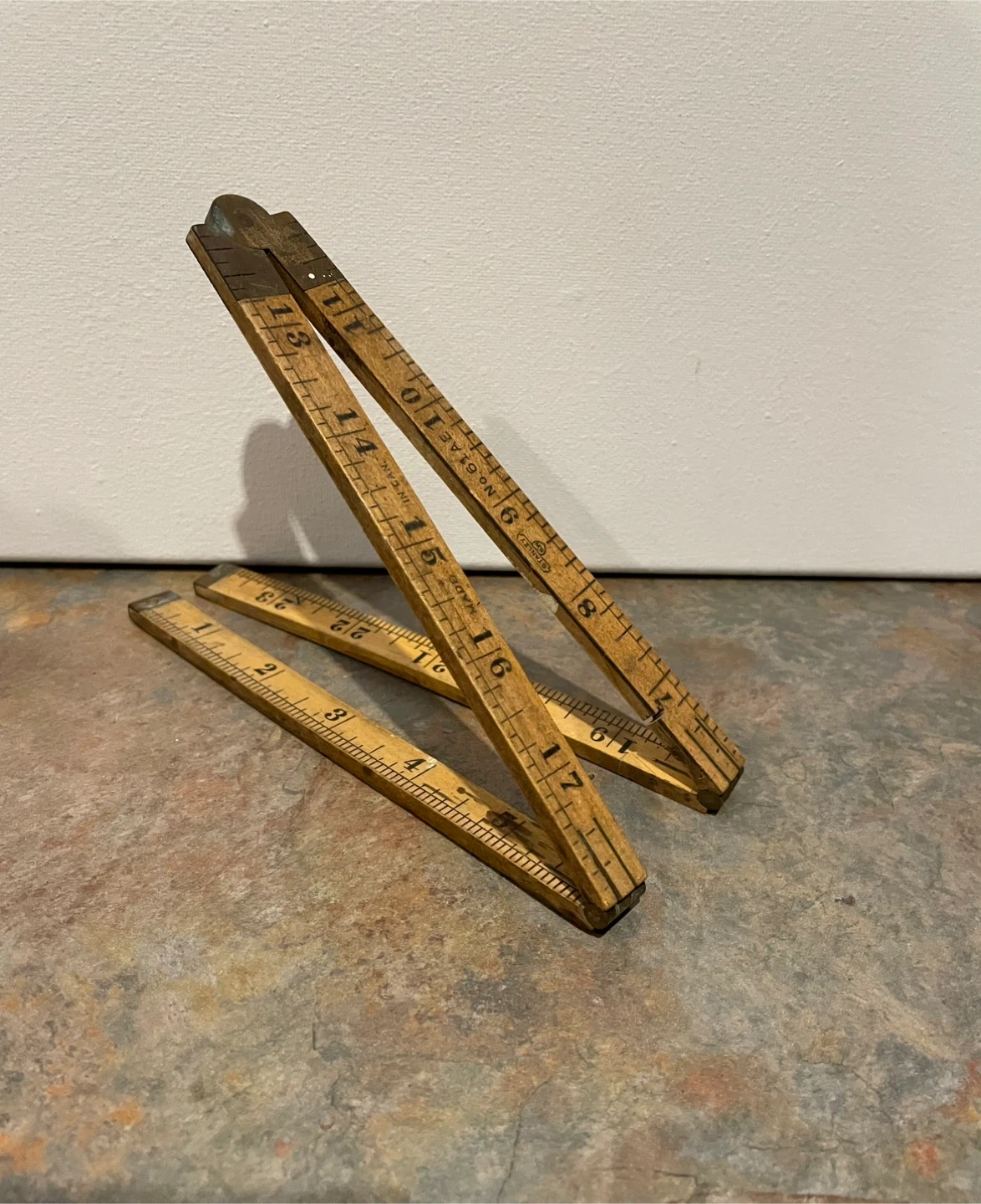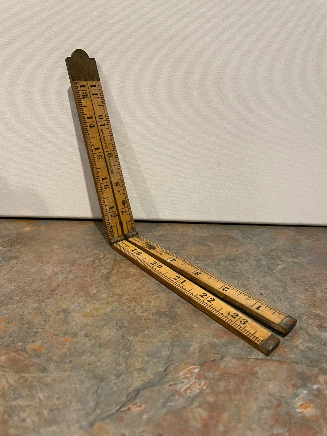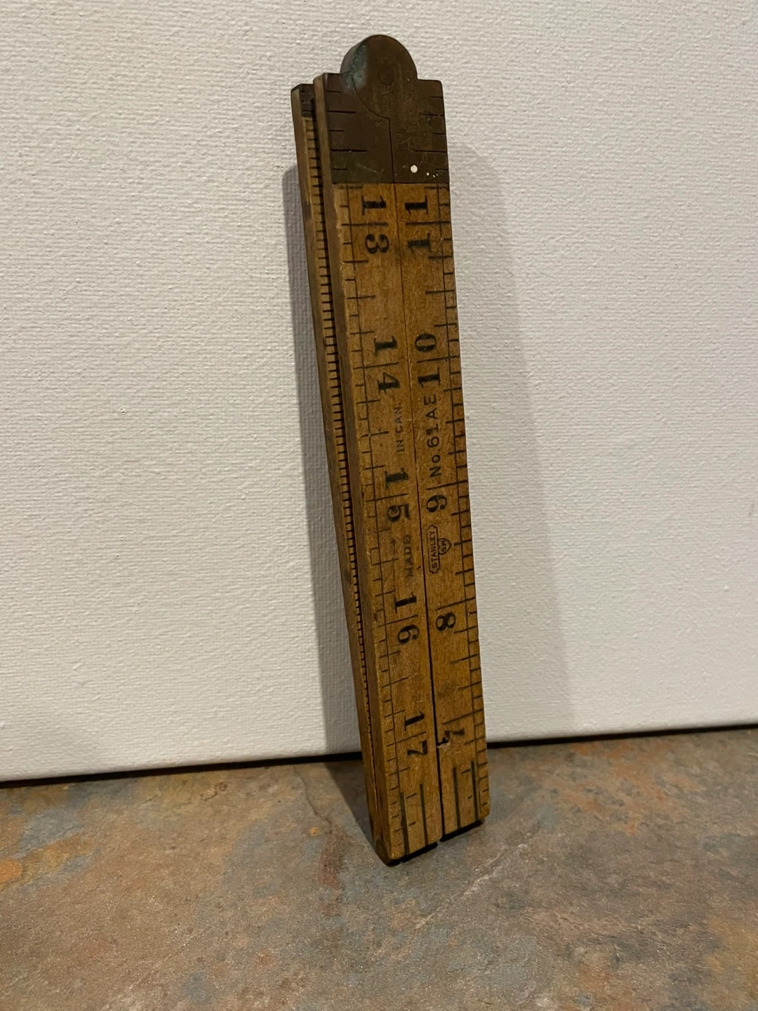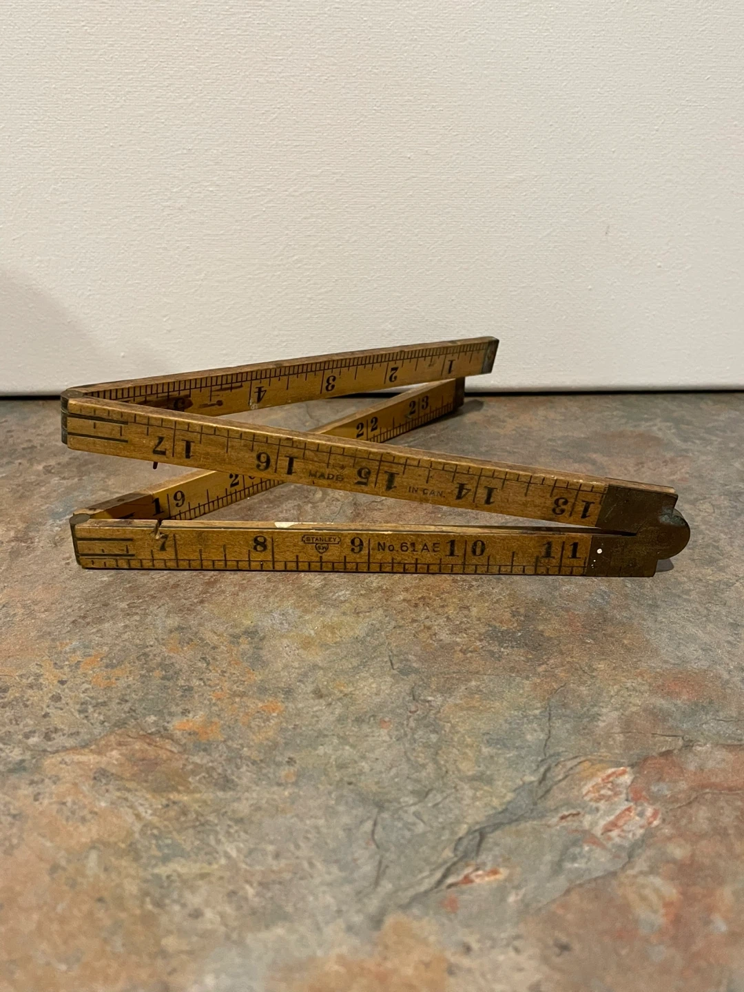 31The ruler is a wooden folding rule, likely made of boxwood, with brass hinges. It features markings for measurement and the model number "No. 61 AE" is visible on one of the segments. Great for crafting, sewing, woodworking or an excellent addition for a collection. Pick up in East Kildonan, cash please, no delivery