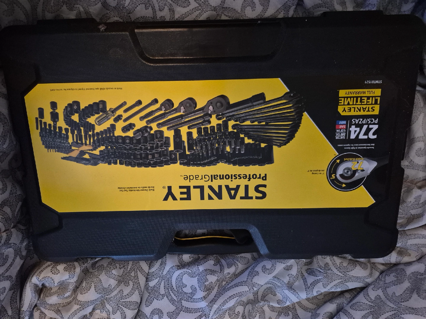 10Selling a Stanley Professional Grade socket set. It comes in a durable case to keep everything organized and protected. This set is perfect for any DIY enthusiast or professional looking for a reliable set of tools! 3 different sets brand new all 3 sets 500$