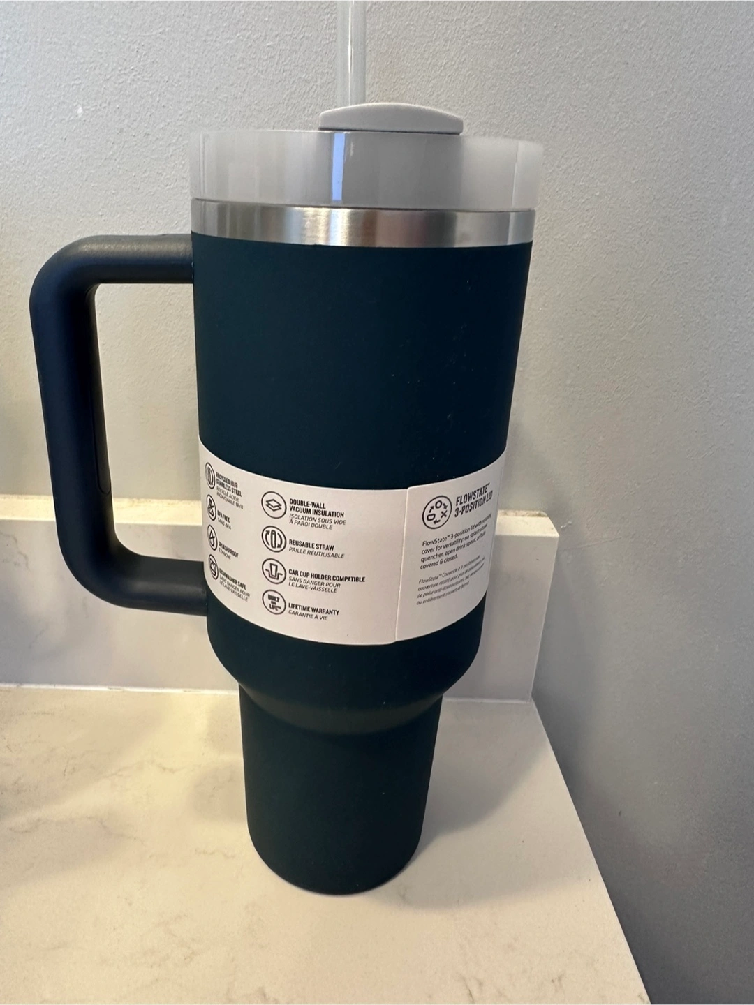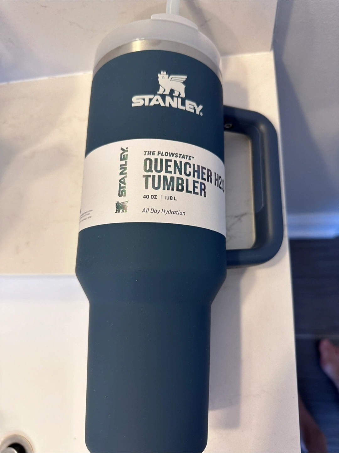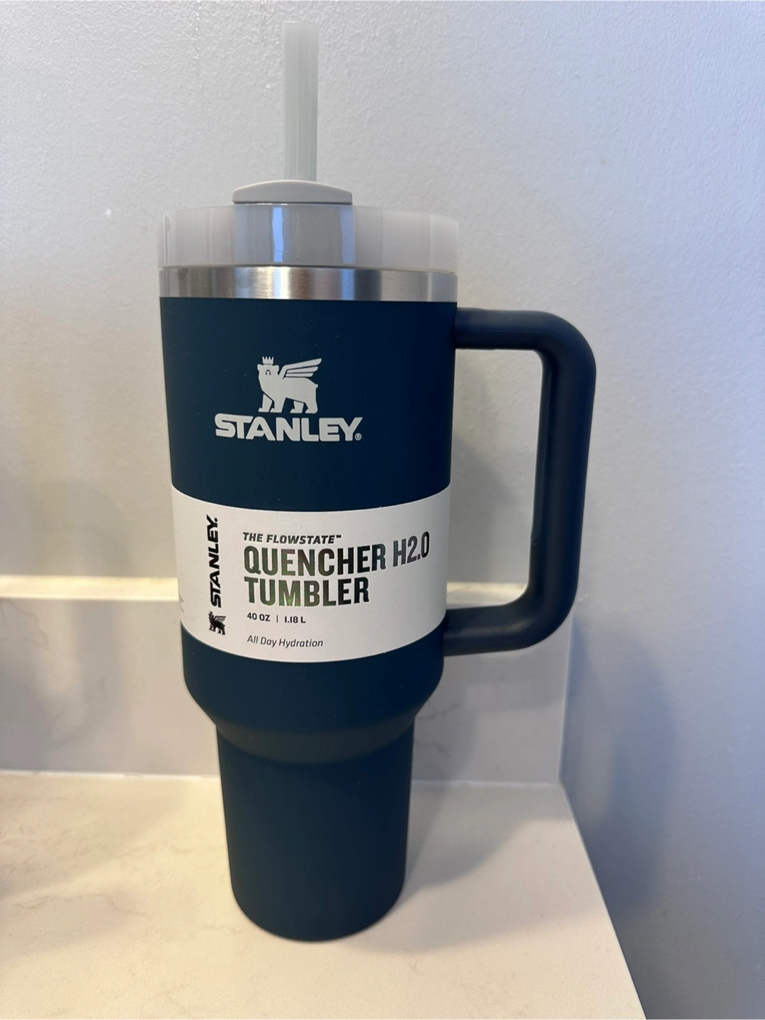 Keep your drinks cold for up to 2 days with this brand new Stanley Quencher H2.0 Tumbler in Navy blue Color. It holds 40 oz (1.18 L) and features all day hydration. Perfect for staying refreshed on the go!!