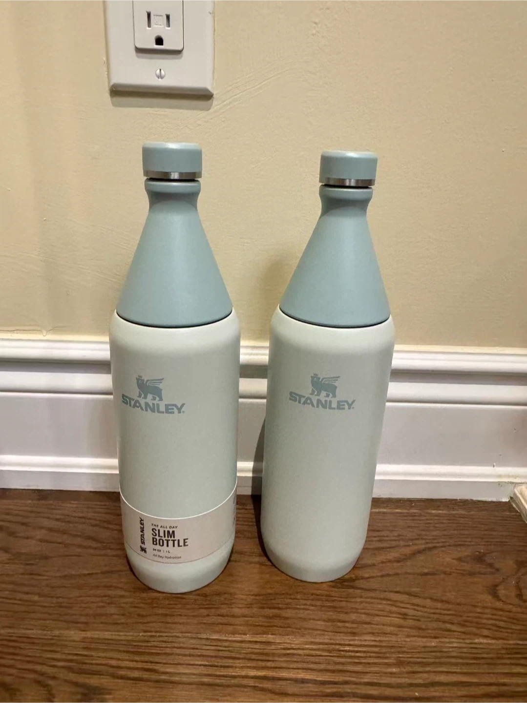 152I'm selling a Stanley The All Day Slim Bottle. It features: - Recycled 18/8 stainless steel - Dishwasher safe - Car cup holder compatible - Leakproof - BPA free 2 for 40