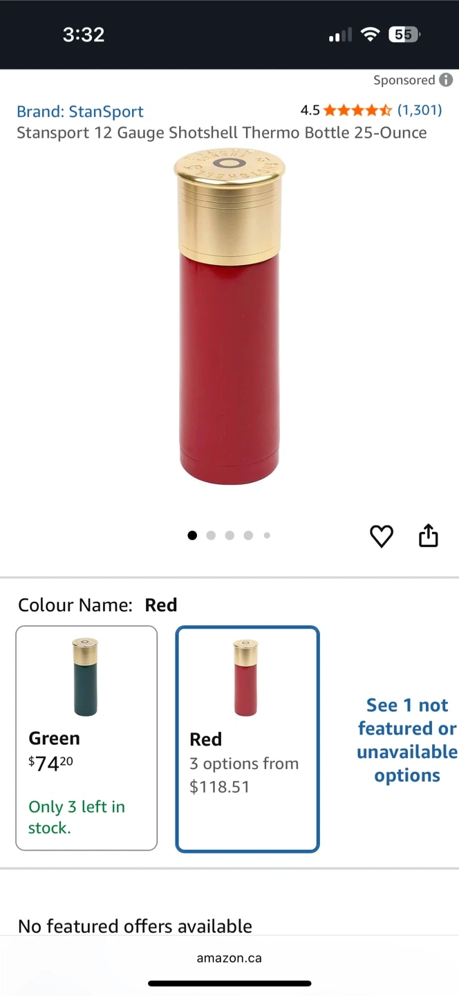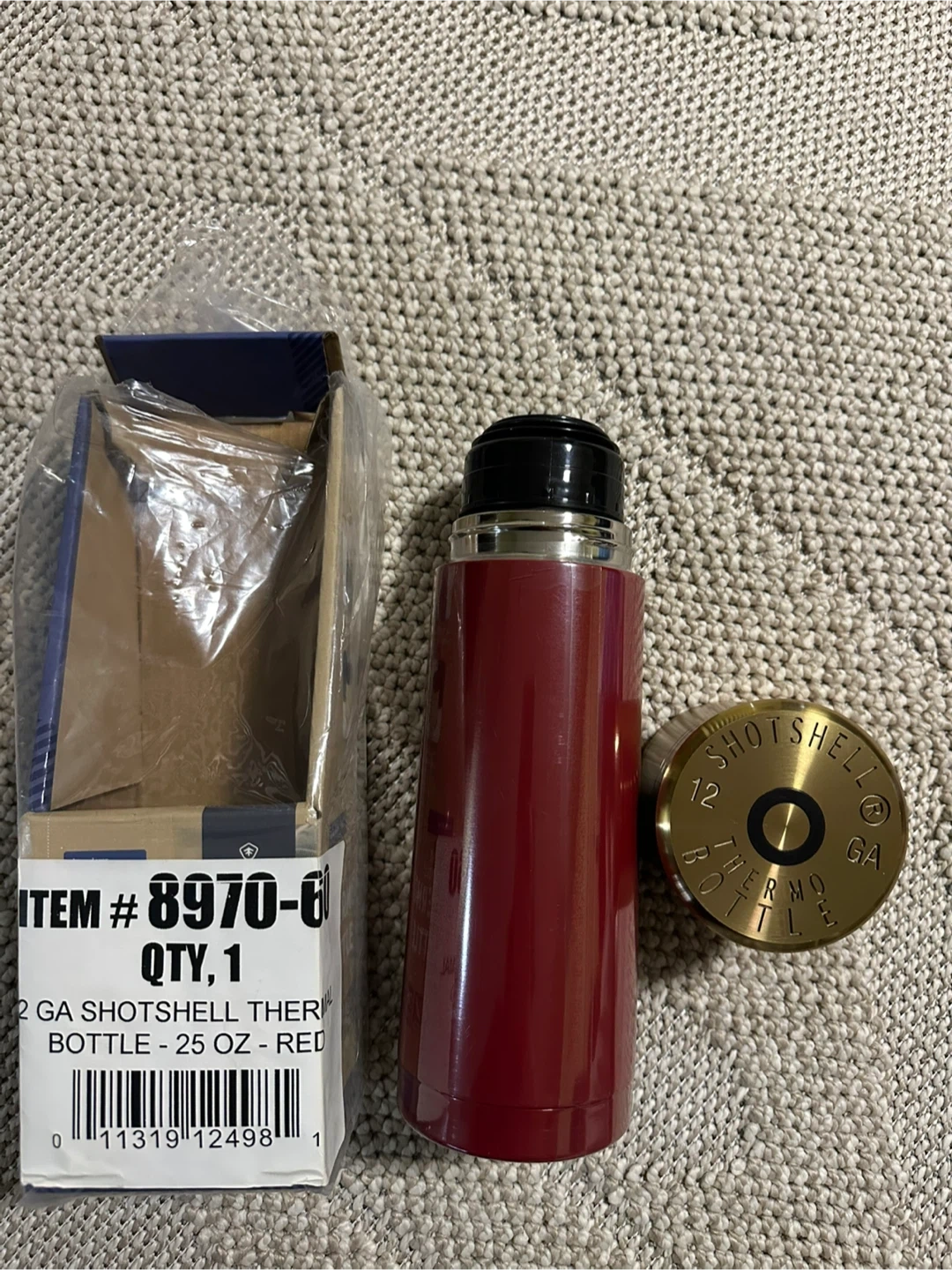 69Selling a StanSport 12 Gauge Shotshell Thermo Bottle in red. It's a 25-ounce bottle. Stainless vacuum-sealed double walls, can keep the temperature hot or use-cold for up to 24 hours. A one-touch stopper allows easy pour with one hand It comes with the original box. Bottle is still wrapped in plastic New unused