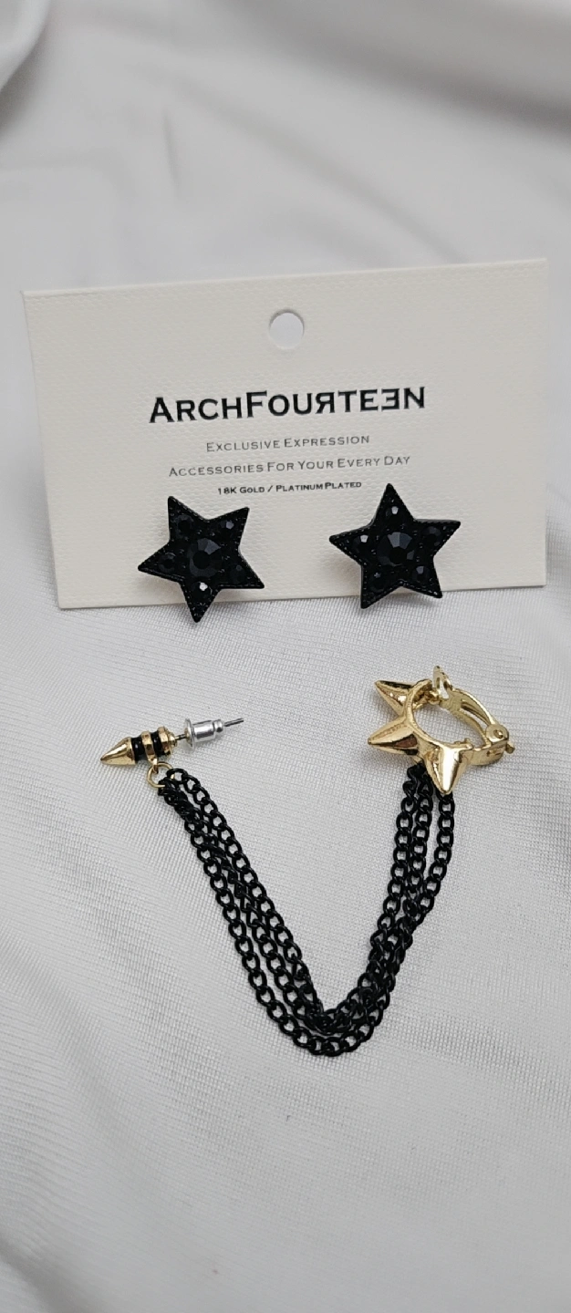 1000+Stylish addition to any outfit! The set includes star-shaped studs and a unique chain earring, plated with gold and platinum for a touch of elegance