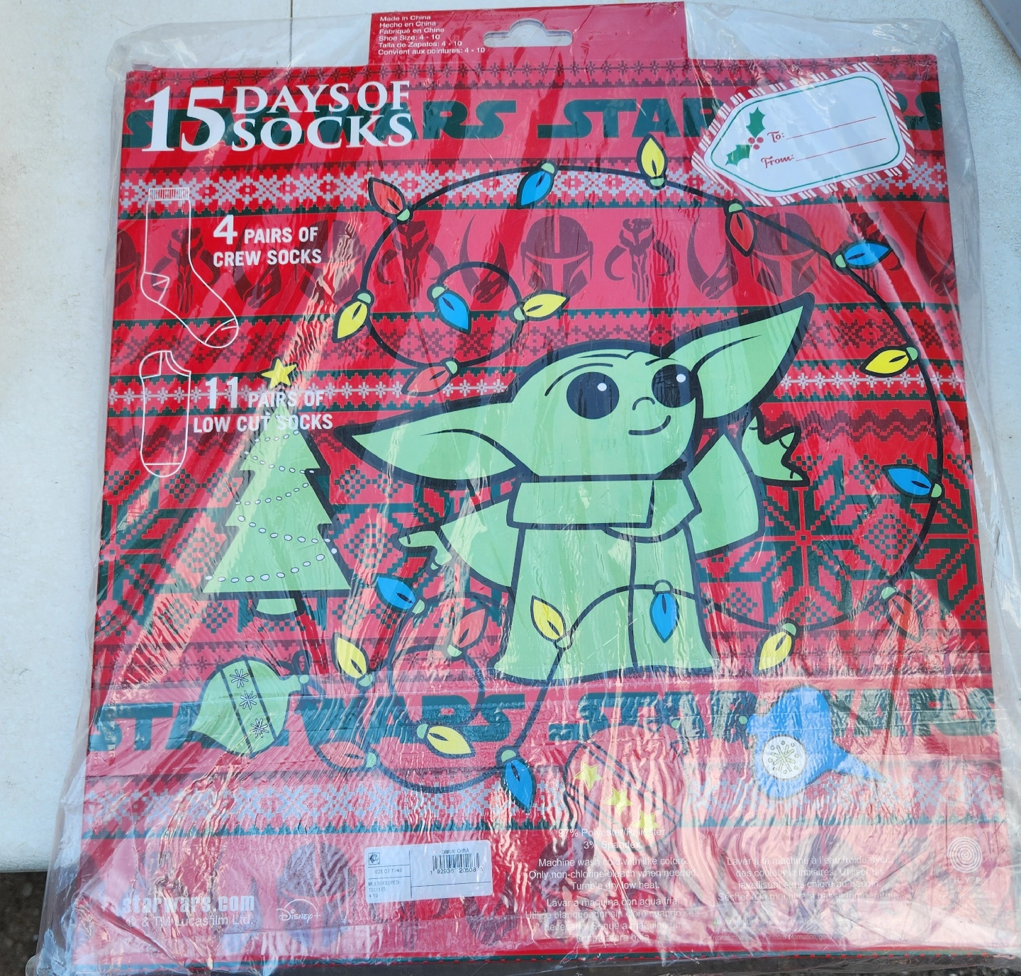 Get ready for the holidays with this fun Star Wars advent calendar! It features 15 pairs of socks with different Star Wars designs, perfect for adding a touch of fandom to your everyday outfits. The socks are women's size 4-10.