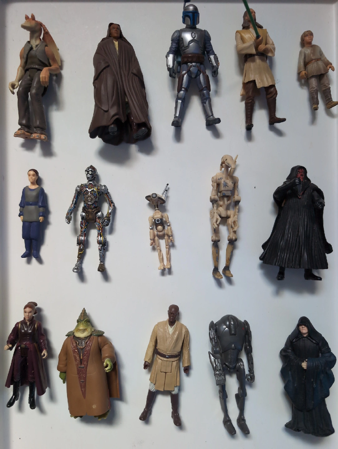 Selling a collection of Star Wars action figures. Various characters and designs are included. Great for collectors or fans of the series!