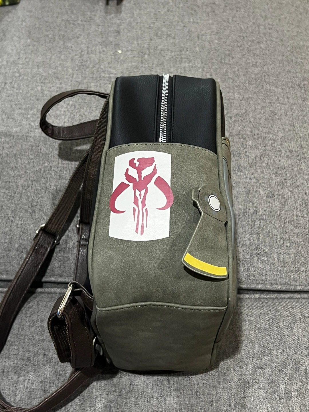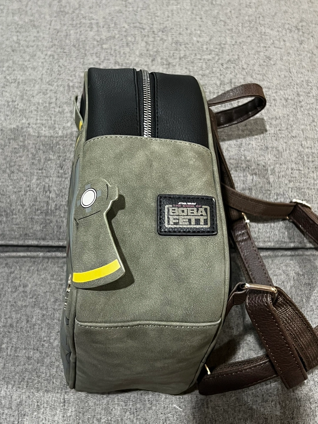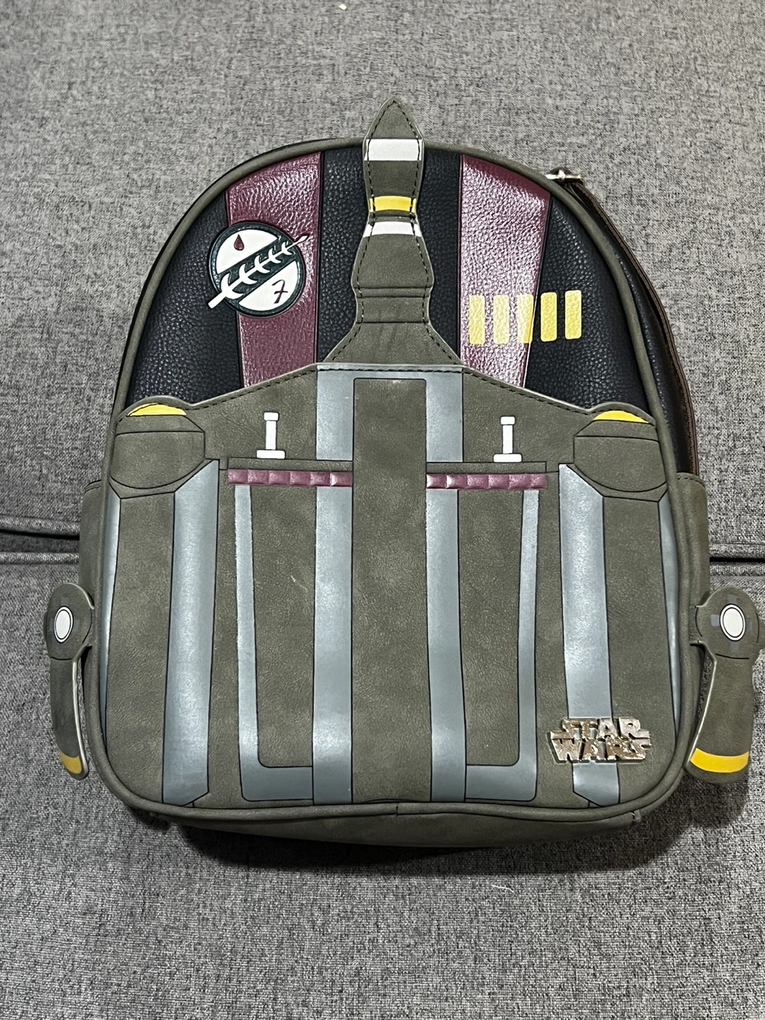 18This Star Wars Boba Fett mini backpack is in great condition! It features the iconic Mandalorian symbol and Boba Fett's helmet design. Perfect for any Star Wars fan looking for a stylish and functional backpack.