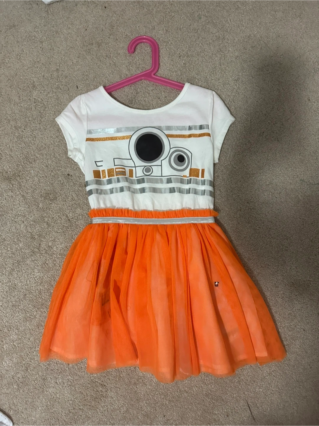A cute Star Wars dress from Disney Parks! This dress features a BB-8 design on the top and an orange tulle skirt. It's a size S. Will fits size 6-8T or even up to 8-10T Got it as a gift but unworn.