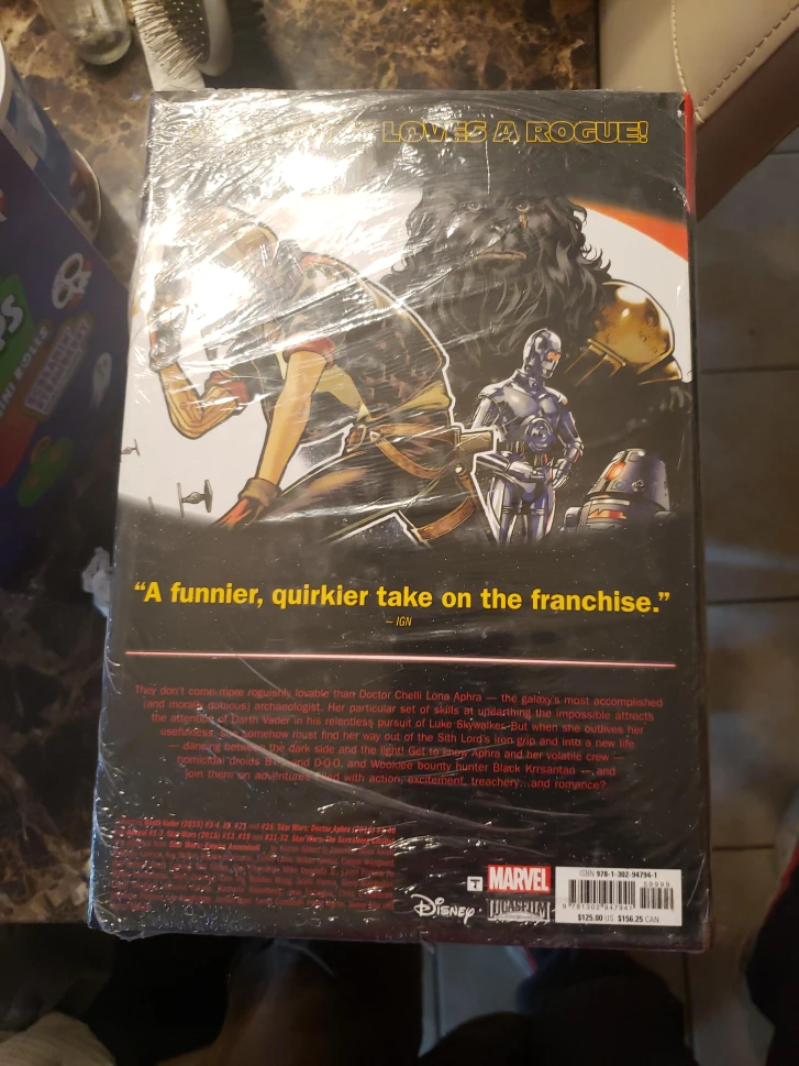 60Selling a brand new, still-sealed Star Wars Doctor Aphra Omnibus Volume 1! It's a fun, quirky take on the franchise, as quoted by IGN. Get to know Doctor Chelli Lona Aphra and her crew in adventures filled with action, excitement, and treachery! Originally priced at $156.25 CAN.