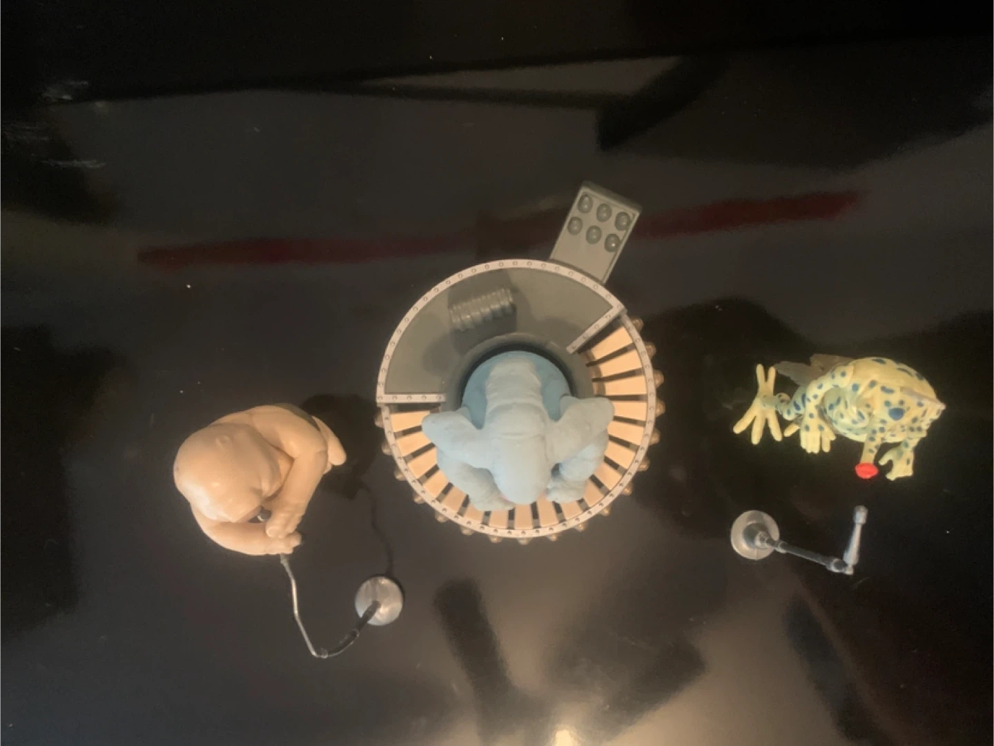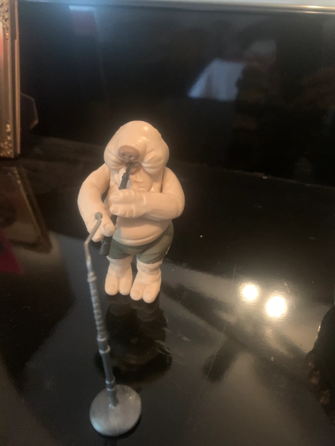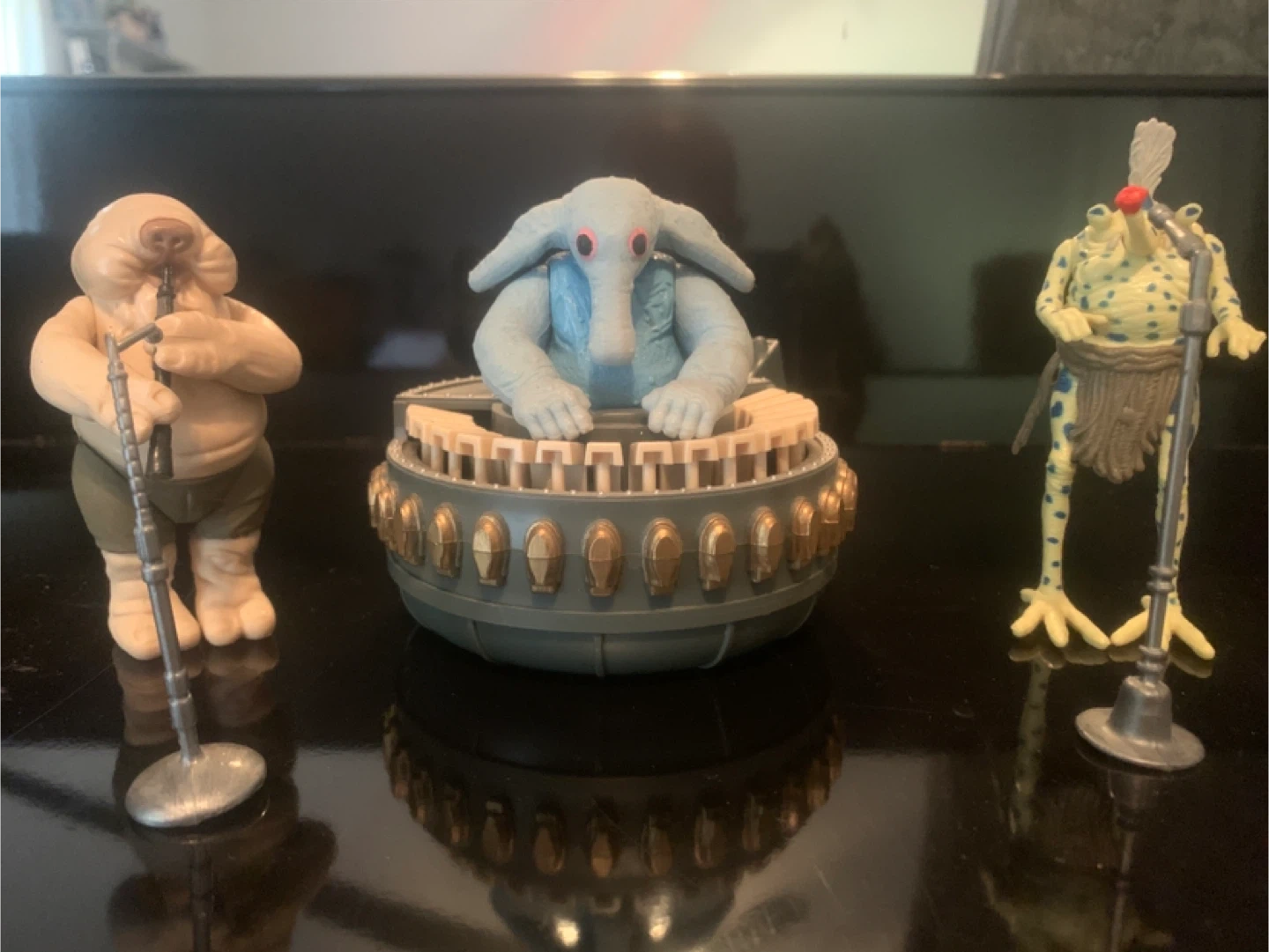 44Selling a set of Star Wars Jabba's Palace band figures. Includes a blue elephant-like creature at a keyboard, a pale creature with a microphone, and a green frog-like creature with a microphone. Great for Star Wars fans. Original from the early 1980’s.