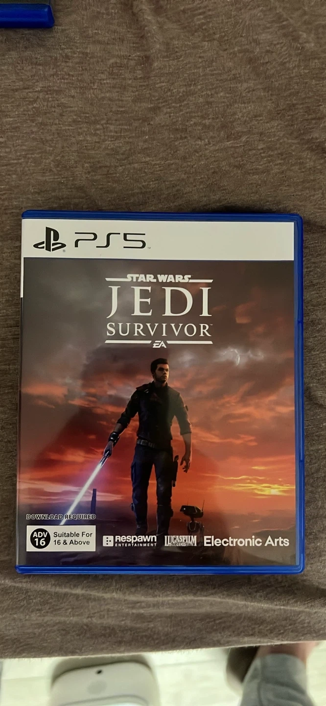 Selling Star Wars Jedi Survivor for the PS5. It's rated ADV 16, so suitable for ages 16 and up. A download is required to play. From Respawn Entertainment, Lucasfilm Games, and Electronic Arts