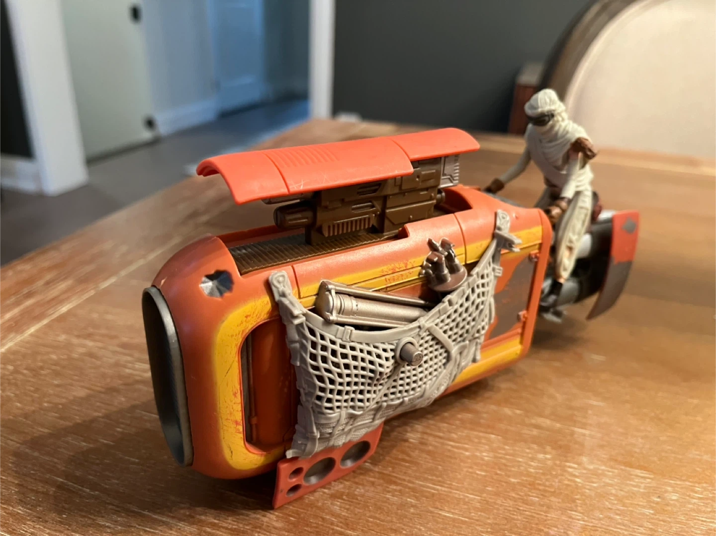 Selling a Star Wars Rey's Speeder vehicle. It's in great condition and ready for a new home. Perfect for Star Wars fans!