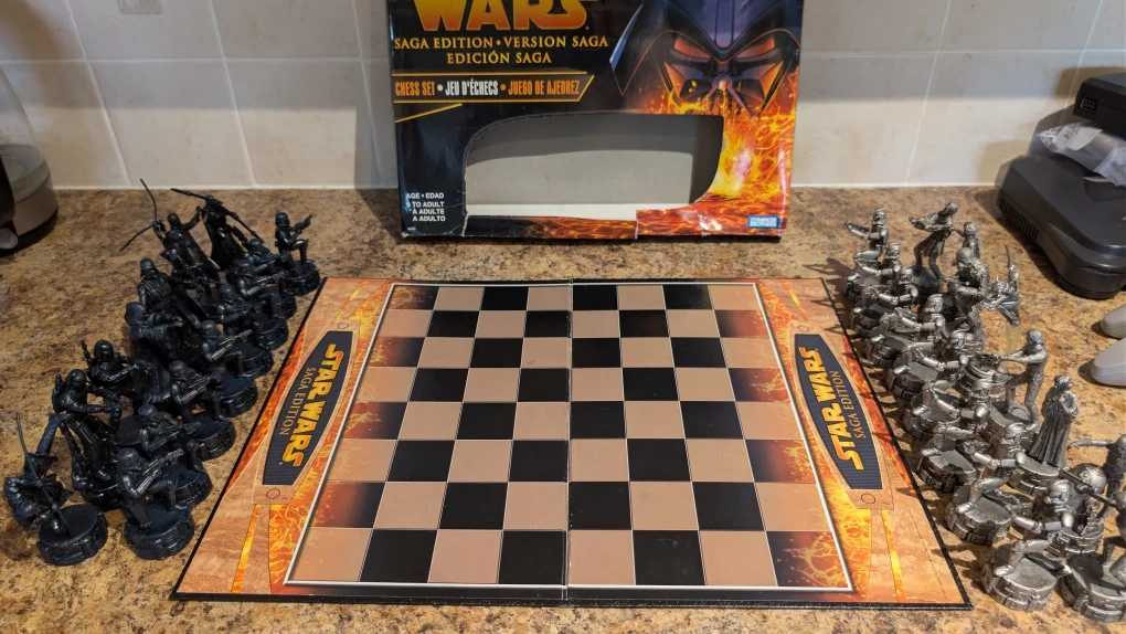 566Selling a 2005 Star Wars Saga Edition Chess Set. It includes 32 unique chess pieces and the chess board. The box is included too! Originally bought for $59.99. in 2005. Great for collectors or chess enthusiasts.