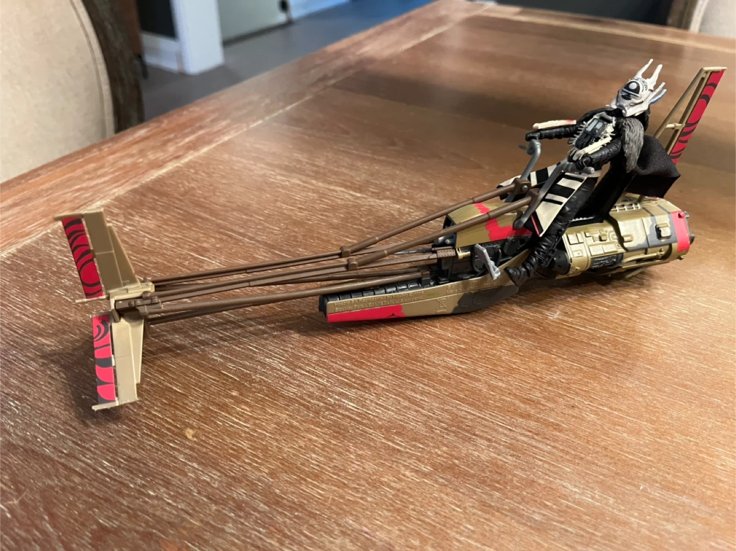 Selling a Star Wars speeder with an action figure. It's in great condition and ready for a new home. Perfect for any Star Wars fan or collector!
