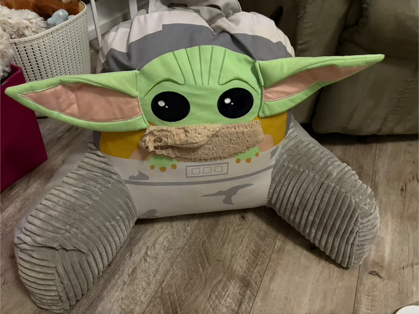 83Snuggle up with this adorable Star Wars The Mandalorian Grogu bedrest pillow! It's perfect for reading, watching TV, or just relaxing in bed. This pillow is in great condition and ready to bring some cozy vibes to your space