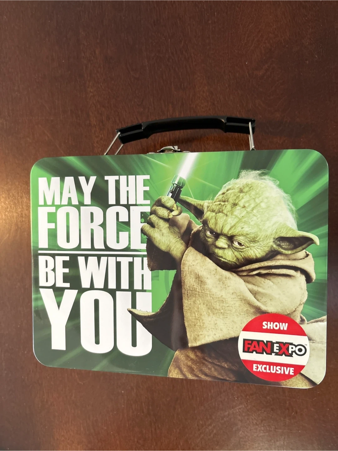 20Selling a Star Wars Yoda lunchbox! It's a Fan Expo exclusive, featuring Yoda and the iconic "May the Force be with you" quote. Perfect for any Star Wars fan!