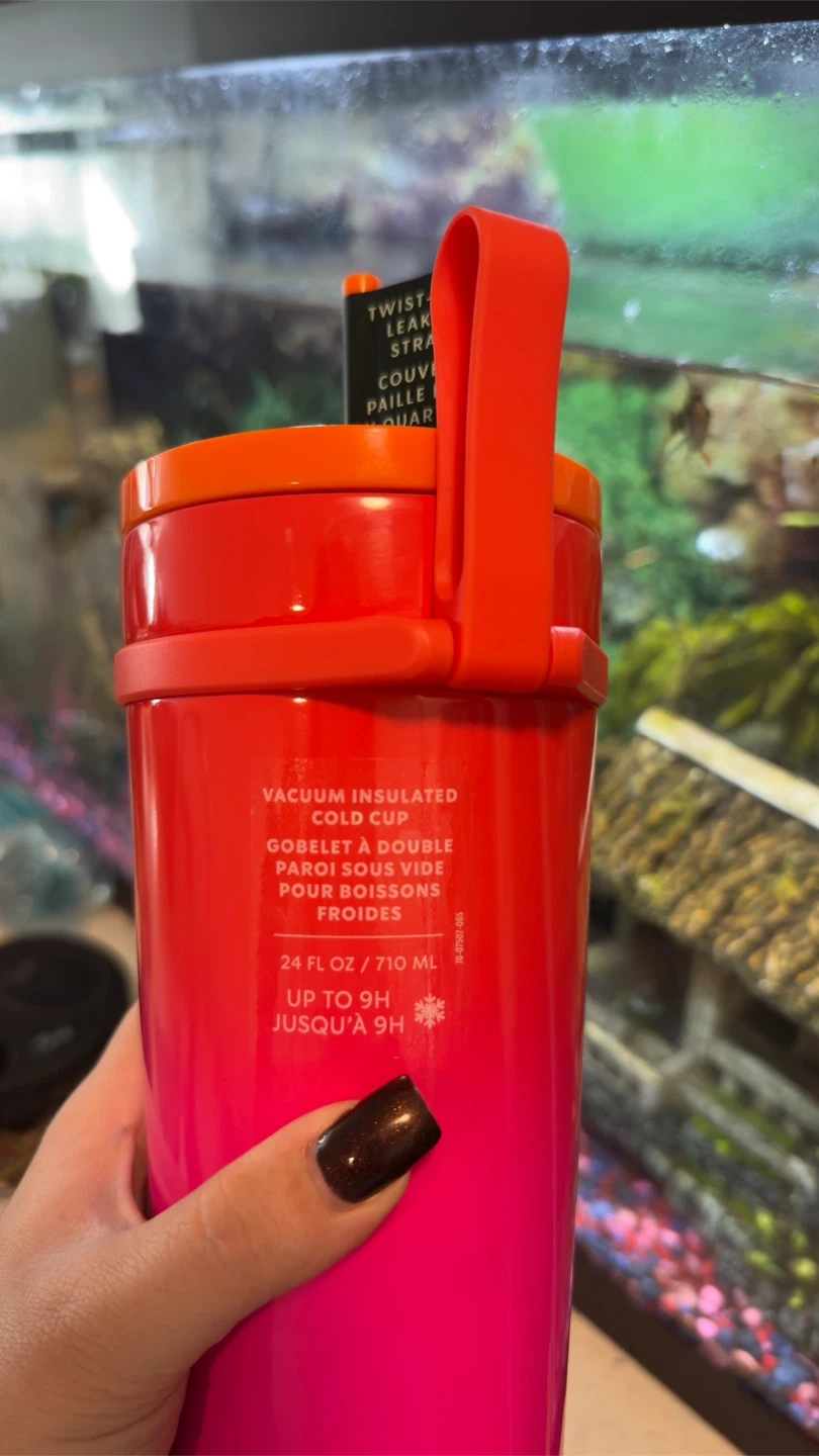 10This is a Starbucks vacuum-insulated cold cup. It features a twist-to-seal leakproof straw lid. It holds 24 fl oz / 710 mL. The original price was $45.95 CAD
