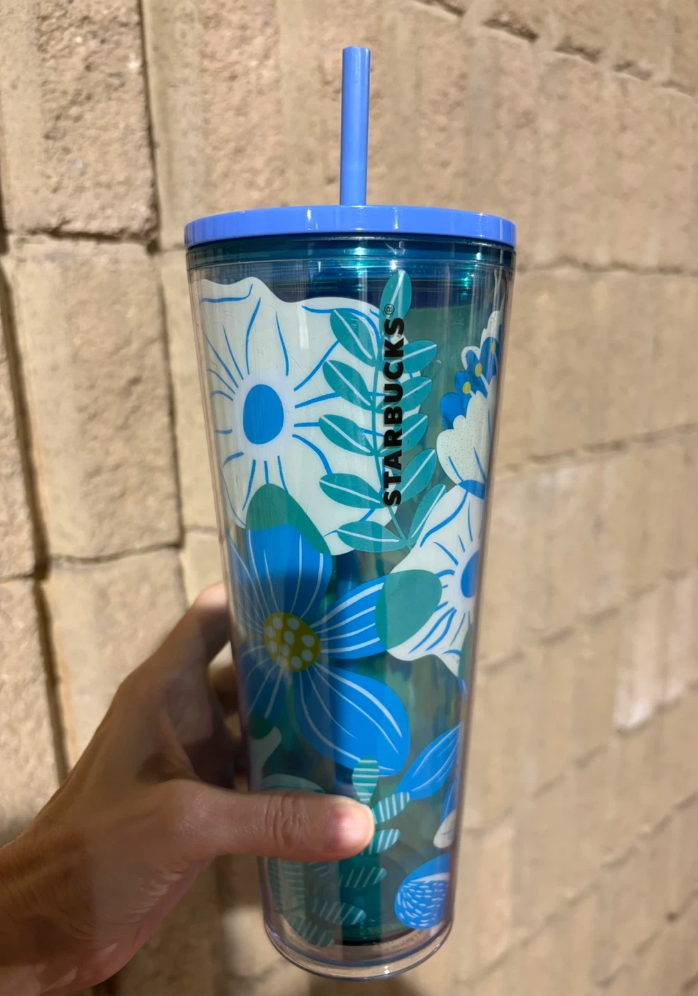 38Selling a cute Starbucks tumbler featuring a blue floral design! It comes with a matching blue straw, perfect for your favourite iced drinks. This tumbler is used but thoroughly sanitized in great condition. Ready for a new home.