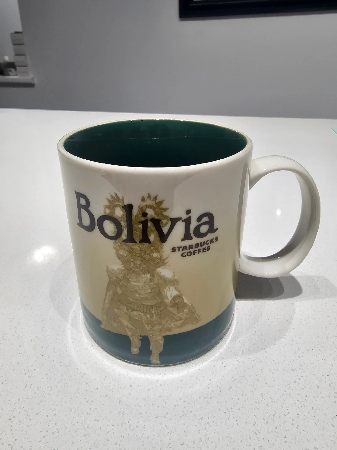 60Are you missing Bolivia in your collection? Selling a Starbucks mug featuring a design of Bolivia. It holds 16 fl oz/473 ml and is in great condition.