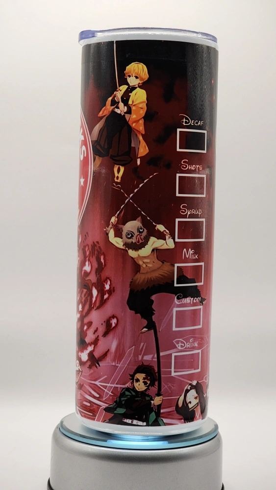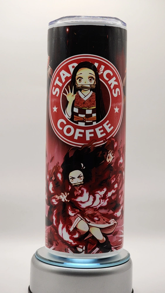 Check out this Starbucks inspired 20oz tumbler featuring Demon Slayer anime characters! It's a unique and eye-catching design for any fan of the series or Starbucks collector