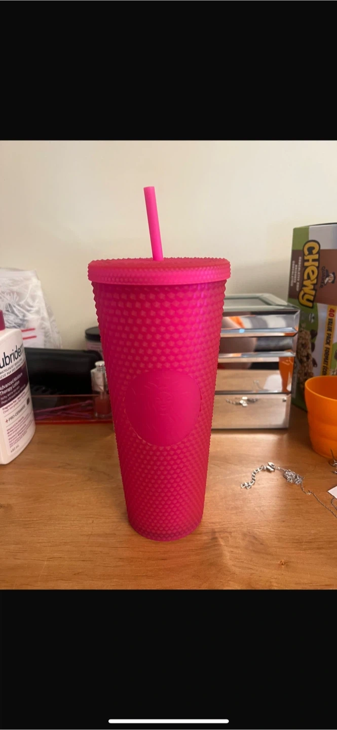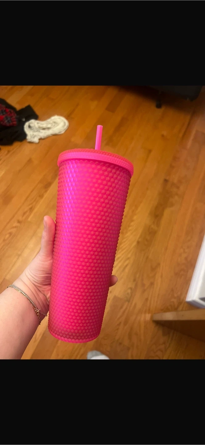 15Selling a vibrant pink Starbucks studded tumbler! It's in great condition and perfect for keeping your drinks cold on the go. Comes with a matching pink straw and textured design for a comfortable grip
