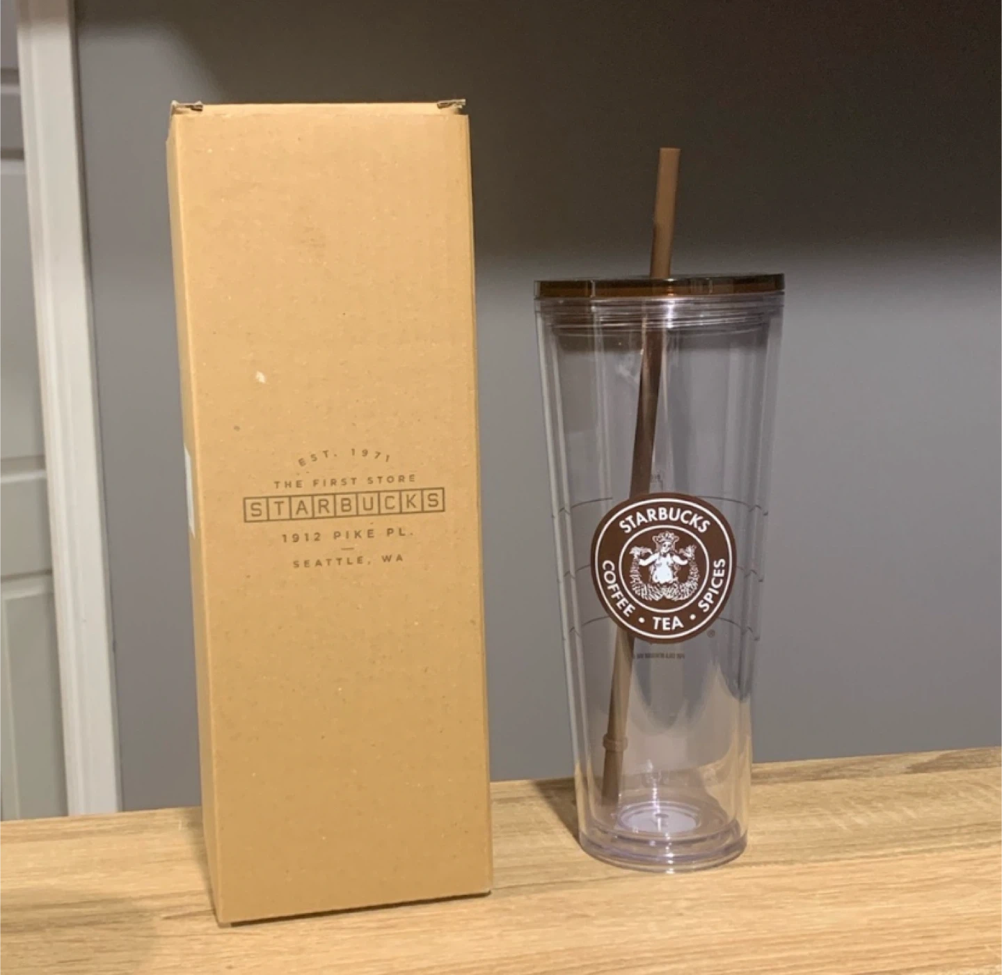 75Selling a Starbucks tumbler from The First Store location! It comes with its original box and straw. I picked this up on a recent trip to Seattle at the first store in Pike Place. I bought it as a gift but ended up with an extra one.