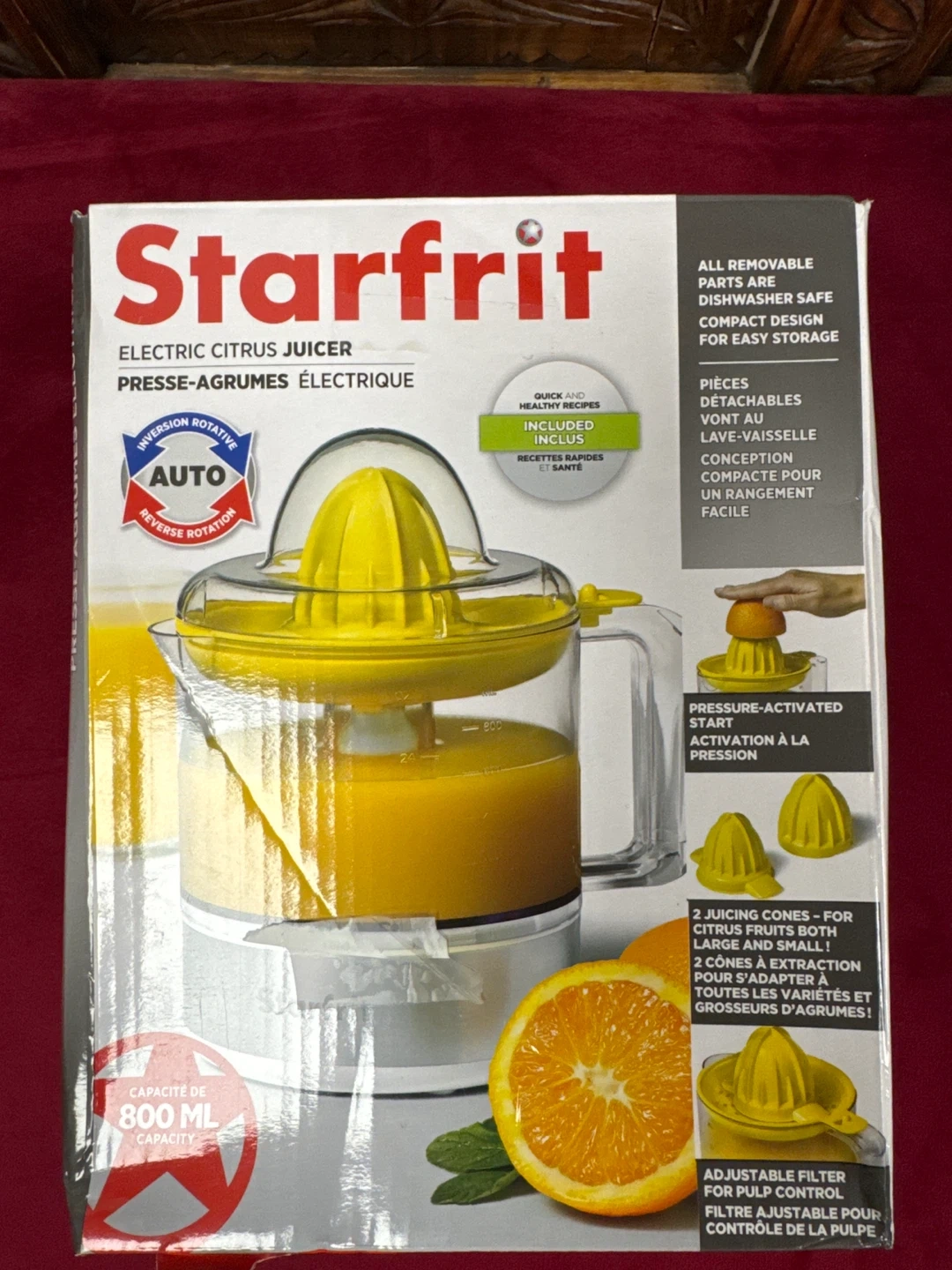 40This Starfrit electric citrus juicer makes juicing easy and mess-free! It features auto-reverse rotation for maximum juice extraction and a convenient pitcher with a drip-free spout. All removable parts are dishwasher safe for easy cleaning and storage