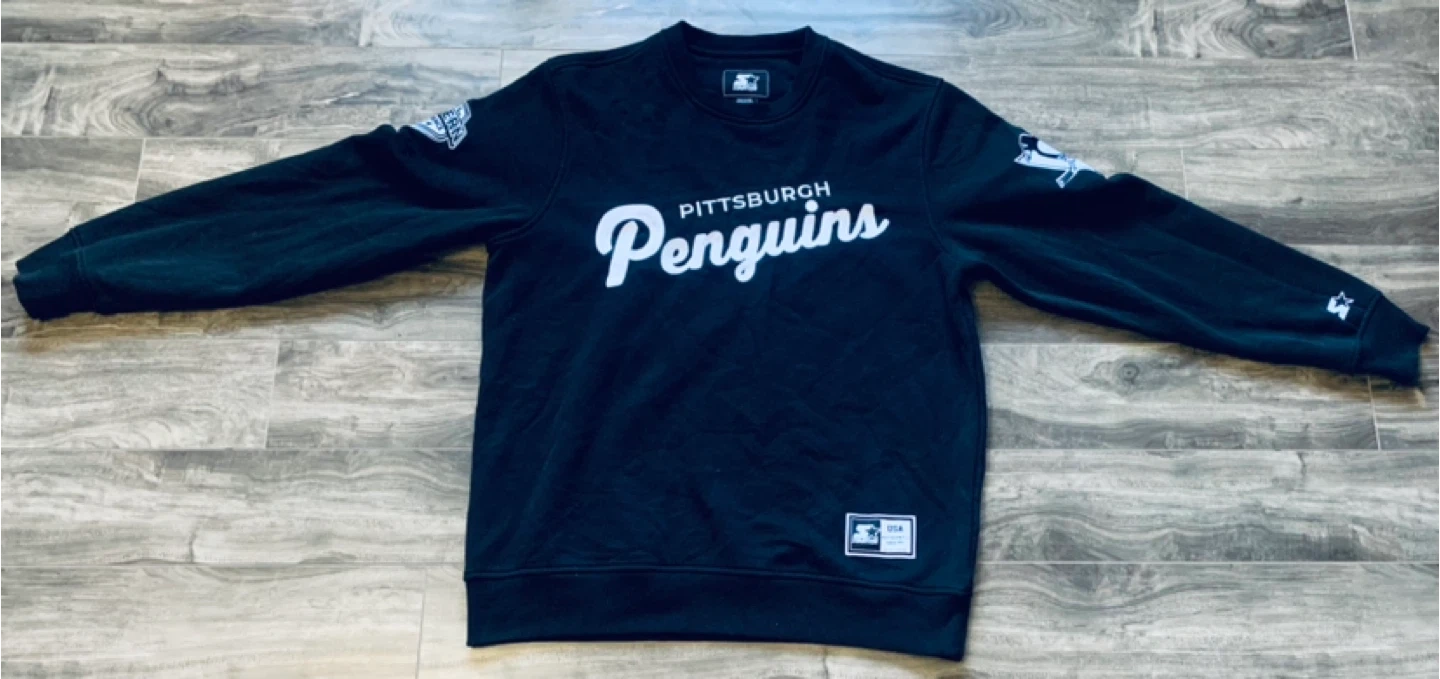 Selling a Starter brand Pittsburgh Penguins sweatshirt. It features the team's logo and colours. Great for any hockey fan!