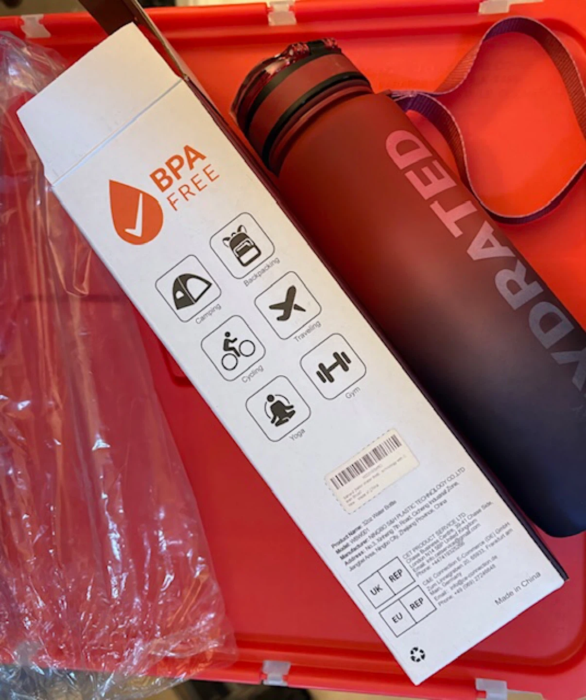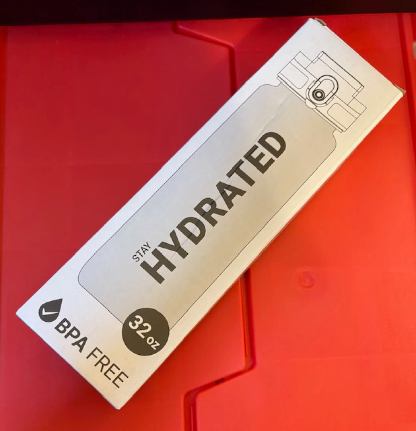 203Selling a brand new Stay Hydrated water bottle, still in its original packaging! It's a 32oz bottle, perfect for staying hydrated on the go. The bottle is BPA free, and the box shows it's great for camping, backpacking, cycling, travelling, gym, and yoga. Comes with a convenient carrying strap too! 🤩