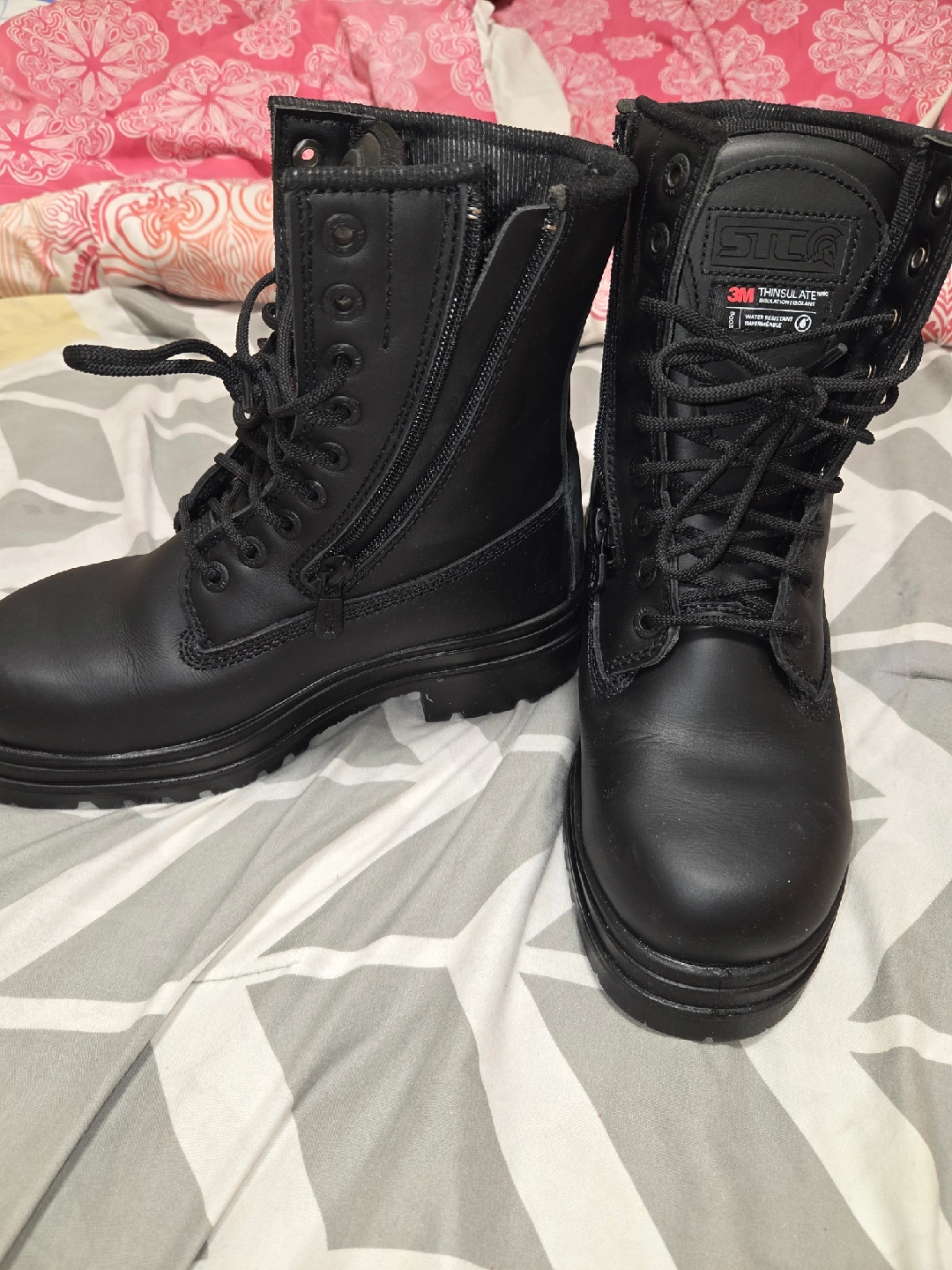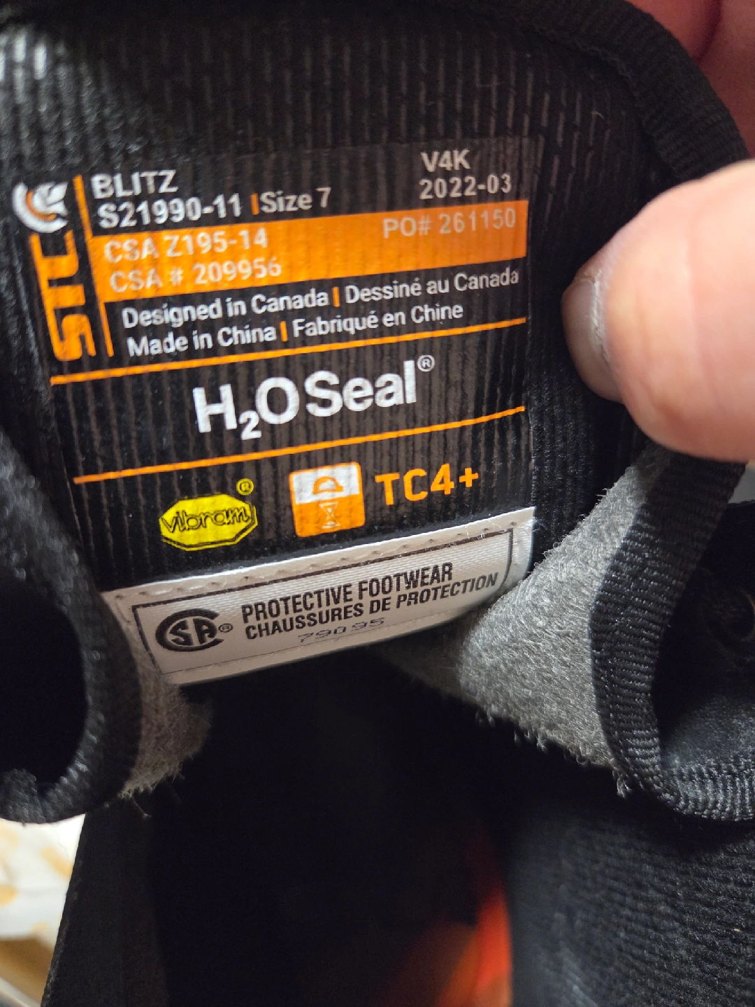 76Selling a pair of STC Blitz CSA protective work boots in size 7. They feature H2O Seal technology and a Vibram sole for added durability and grip. Perfect for anyone needing reliable protective footwear!