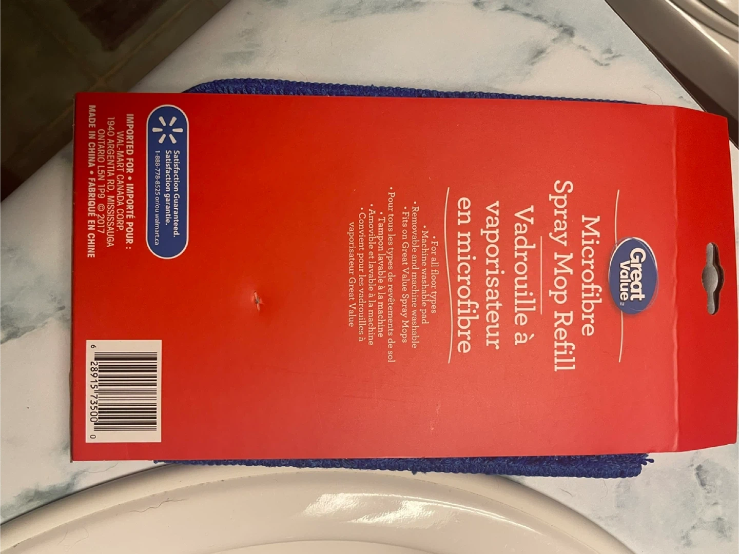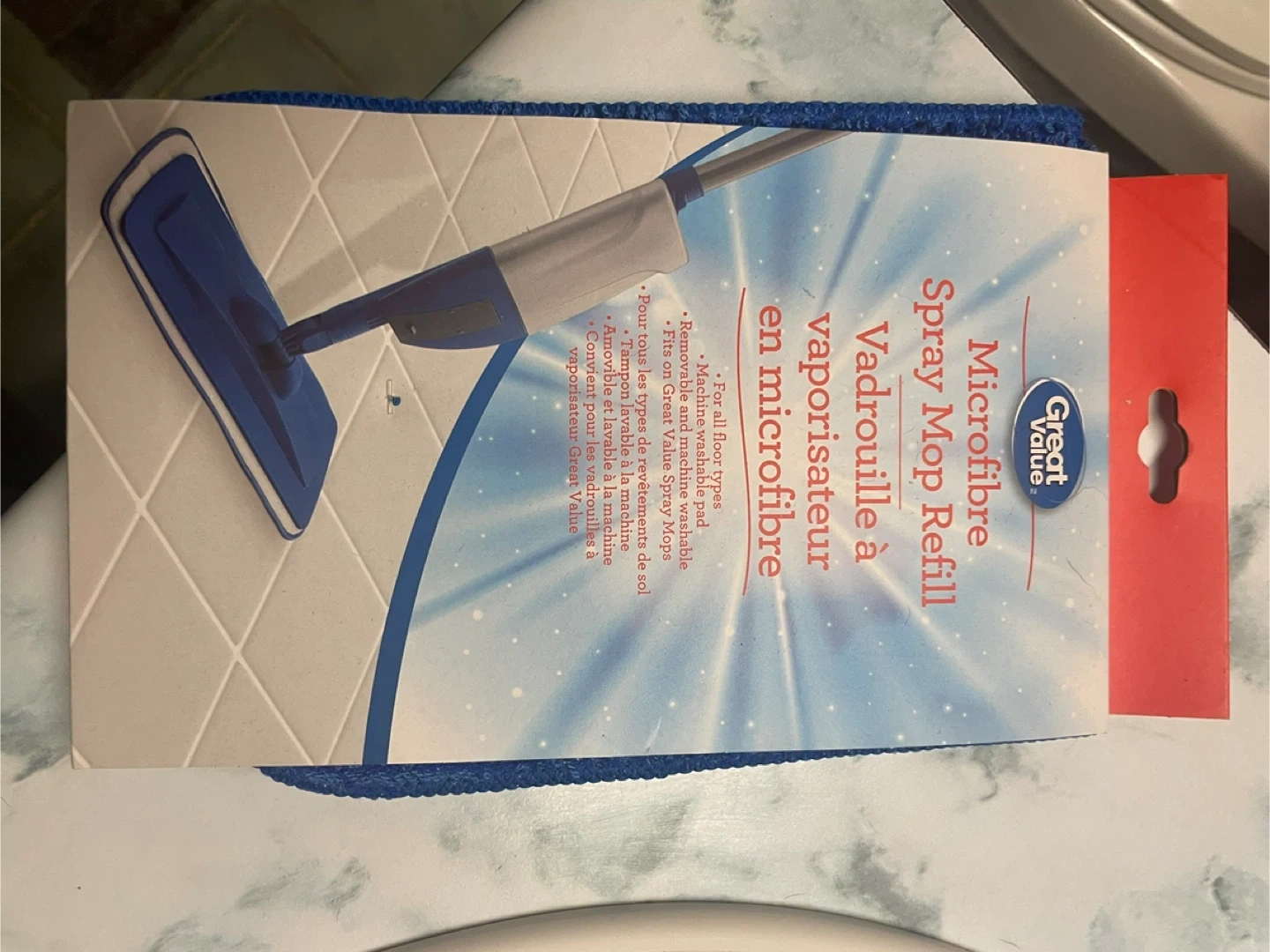 This is a pack of microfibre mop refill pads. They're machine washable and fit on Great Value Spray Mops. Suitable for all floor types. I have one that is unopened and one set that has been used but not excessively.