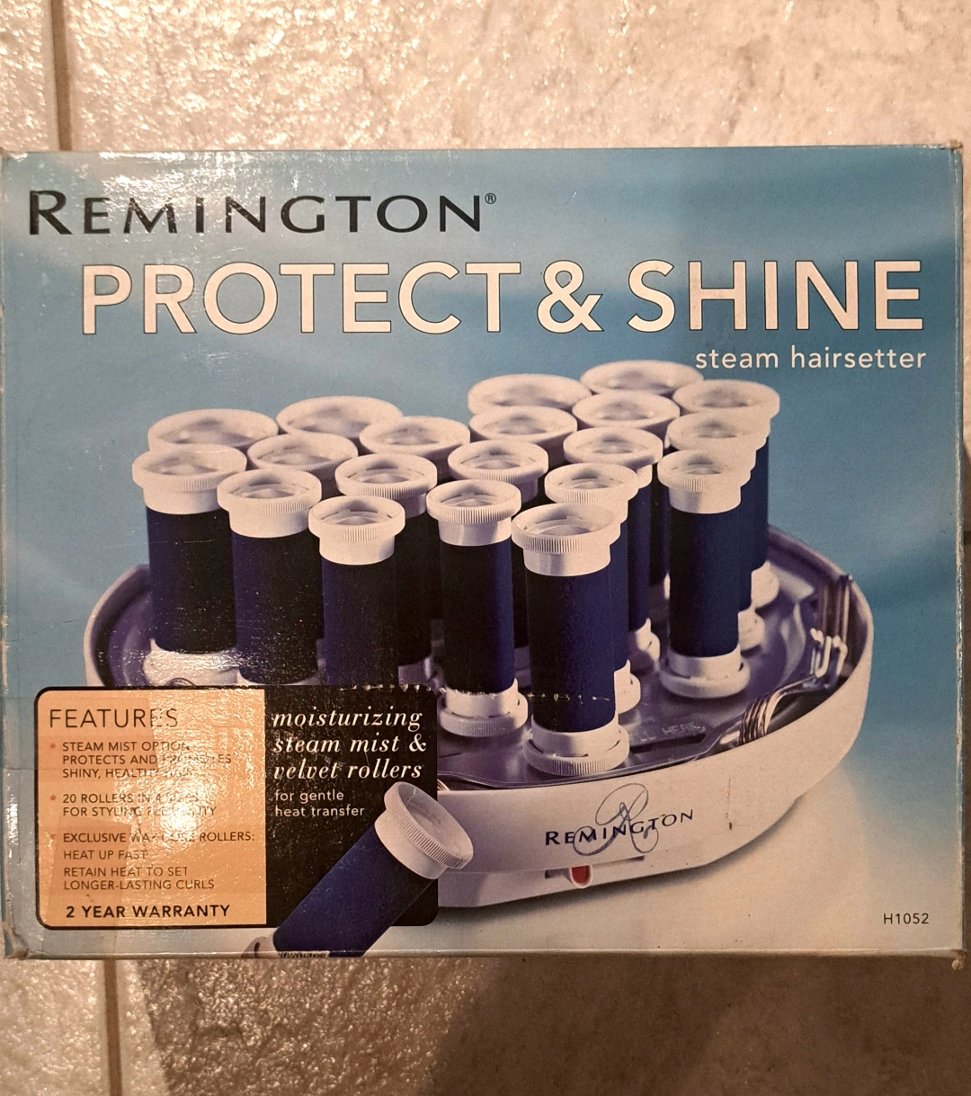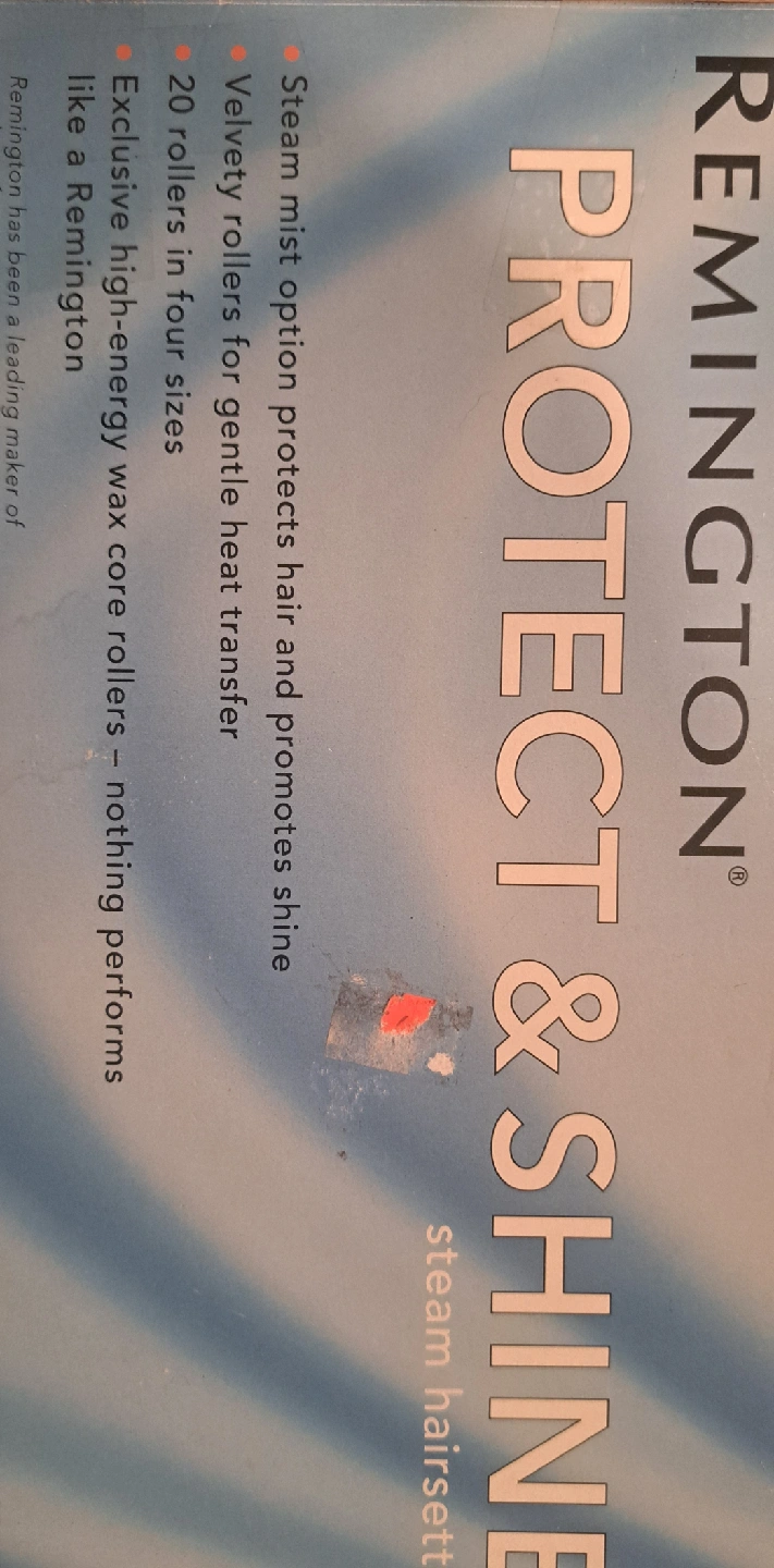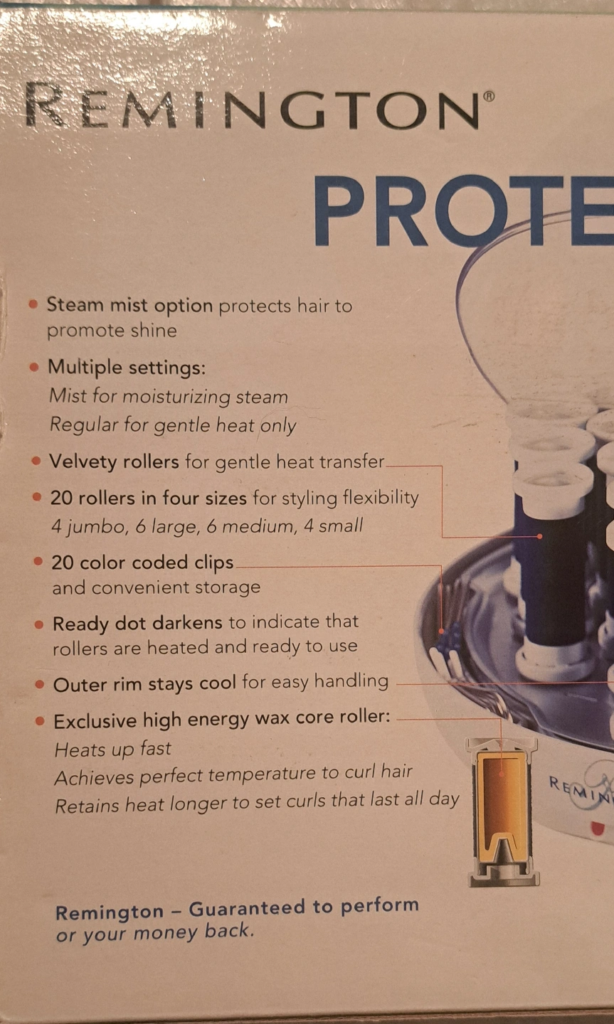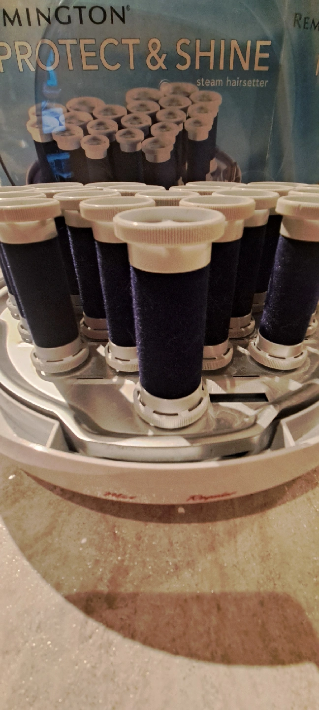 83Remington Protect & Shine steam hairsetter. It features a steam mist option to protect hair and promote shine. There are multiple settings for moisturizing steam and regular gentle heat. The set includes velvety rollers for gentle heat transfer, with 20 rollers in four sizes: 4 jumbo, 6 large, 6 medium, and 4 small. It also has 20 colour-coded clips and convenient storage PICK UP - Eglinton West and Oakwood