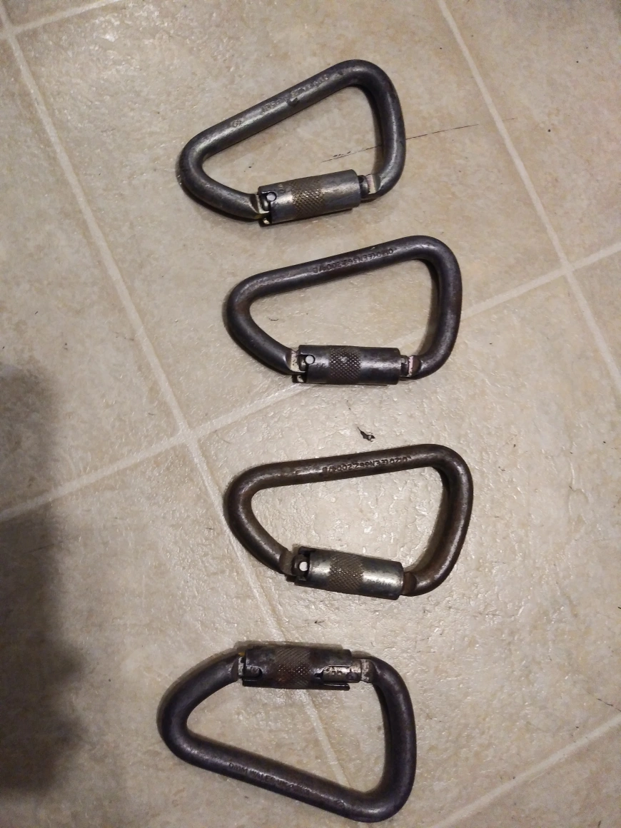 $10 each Selling a set of four steel carabiners designed for rope access and rappelling activities. These carabiners feature a secure locking mechanism to ensure safety during climbing or rescue operations. Here are some details: * Durable steel construction * Locking gate mechanism * Suitable for rope access, rappelling, and rescue Why let gravity have all the fun? These carabiners are ready to assist you in your high-flying adventures! If the ad is still up, the carabiners are available!