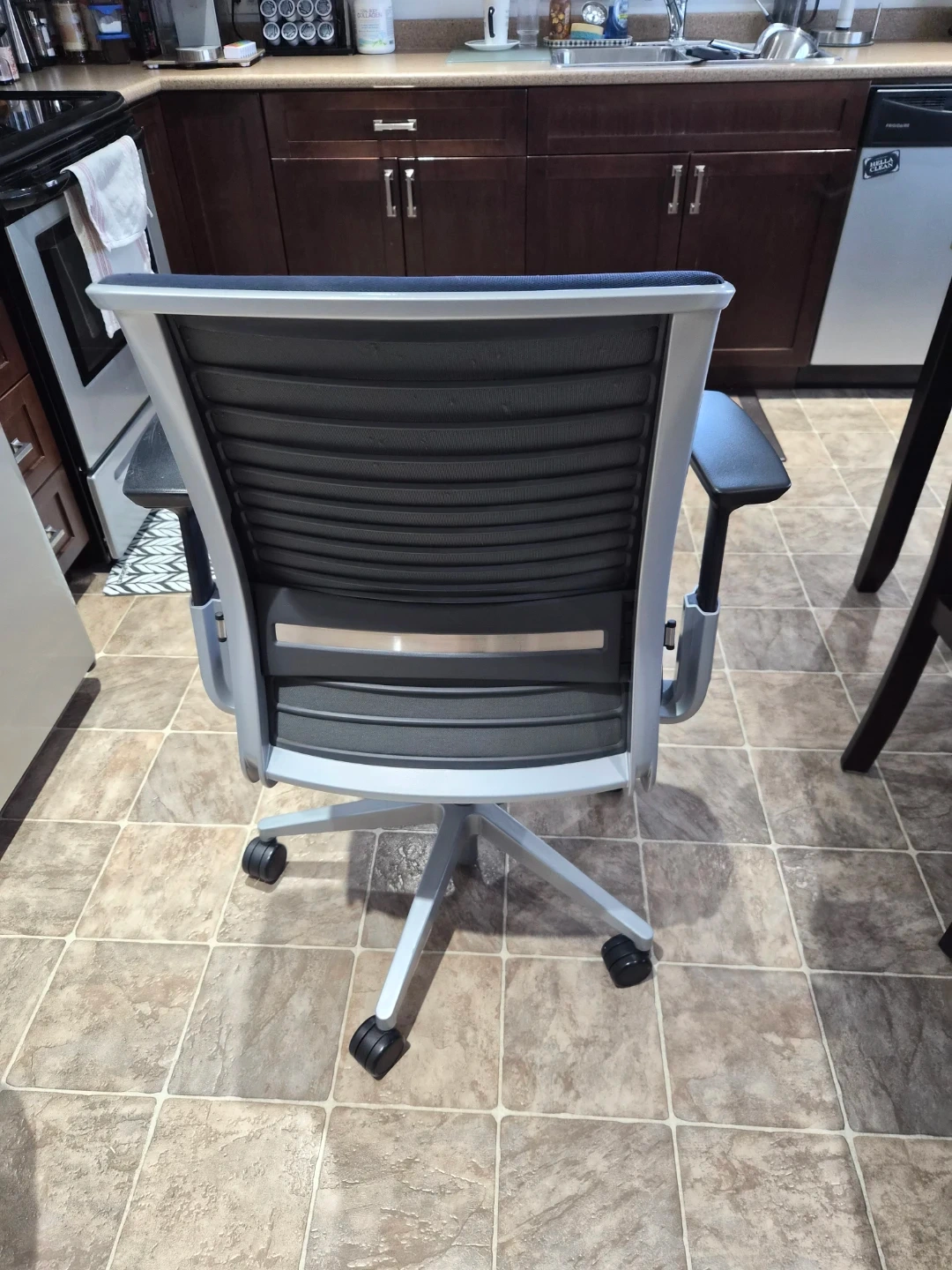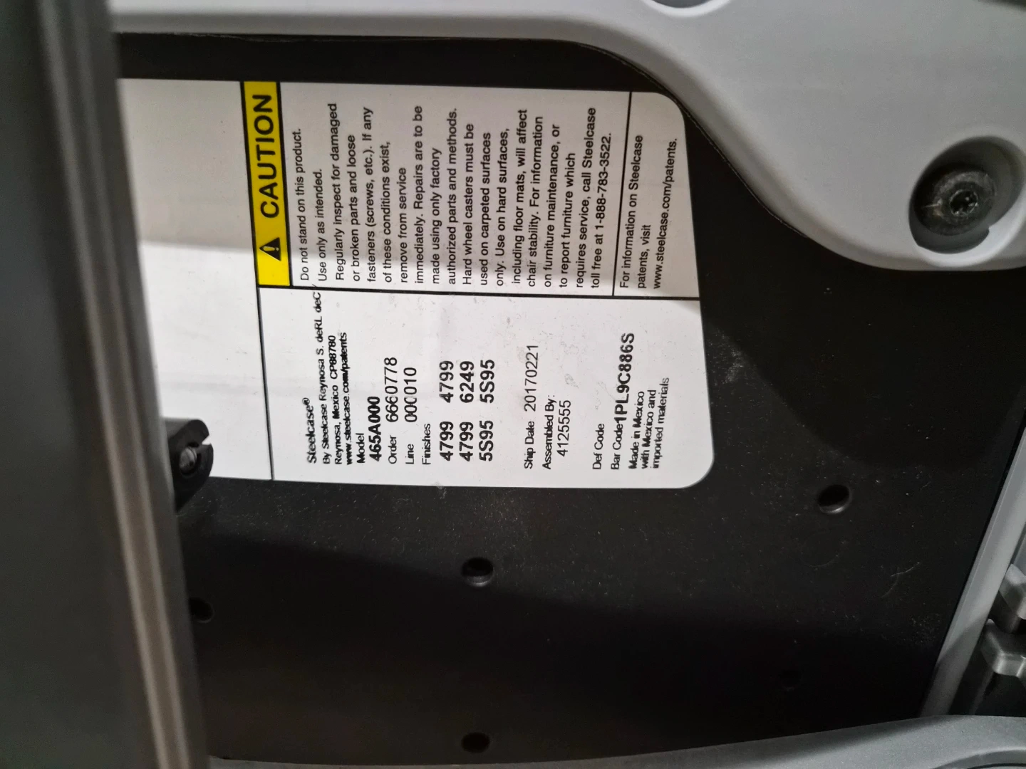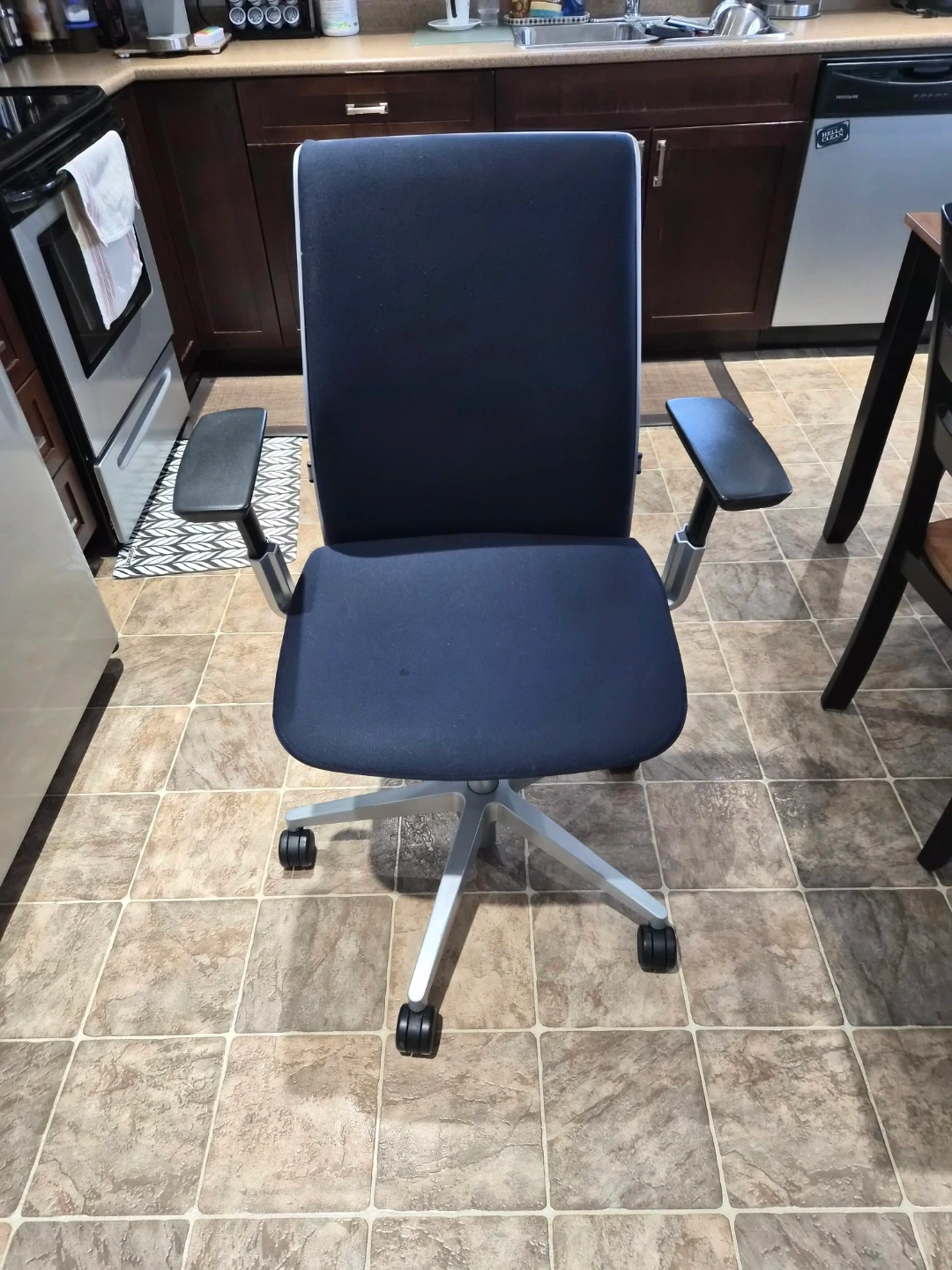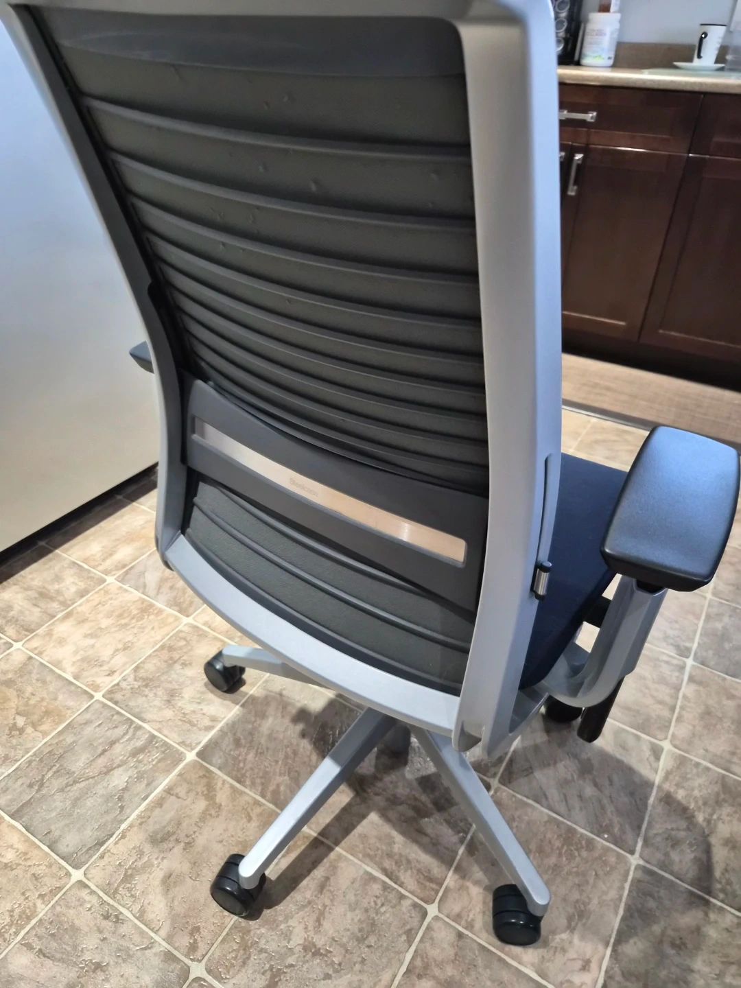 121Selling a Steelcase office chair in great condition! This chair has a blue seat and back, with a light grey frame. It's a comfortable and supportive chair, perfect for working from home or in the office. The model number is 465A000 This is a rotary office chair with a high back, adjustable lumbar support, and adjustable armrests. Key features include a concurrent tilt mechanism, lockable seat and backrest, adjustable seat depth, and dual fabric upholstery. This model is also recognized as a "Green Chair"