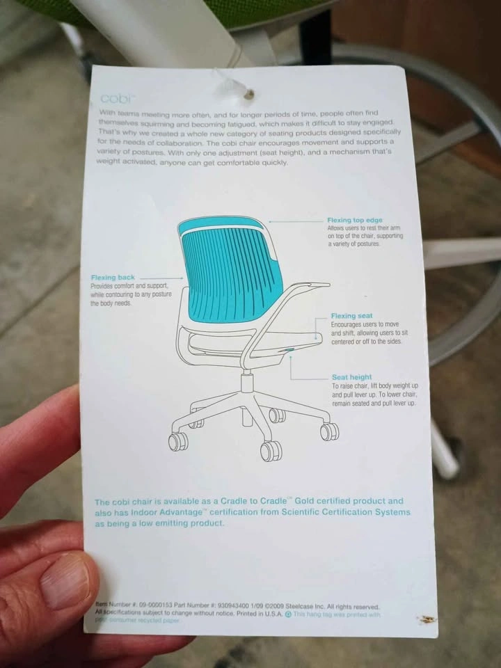60Brand new. 2x blue and 13x green. Has a foot rail. Chair is height adjustable from approximately 22" to 33". Width between arm rest is approximately 19.5". Seat measures approximately 19.5" wide x 20" deep. The back rest measures approximately 19" tall from the seat. $295 each plus HST. Pick up near Conestoga Mall in Waterloo, Monday to Friday from 12-5 p.m.