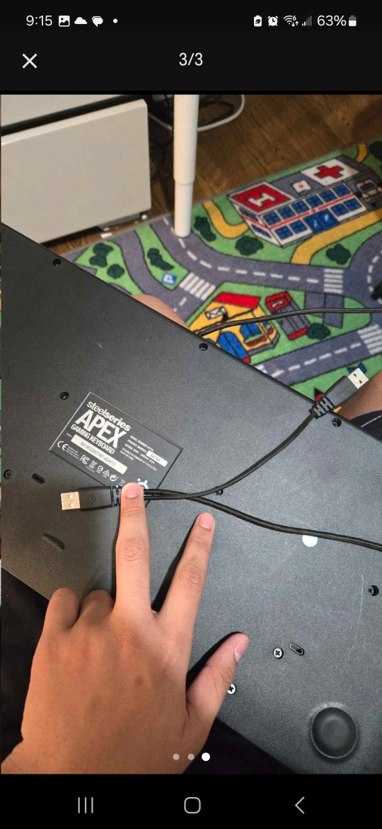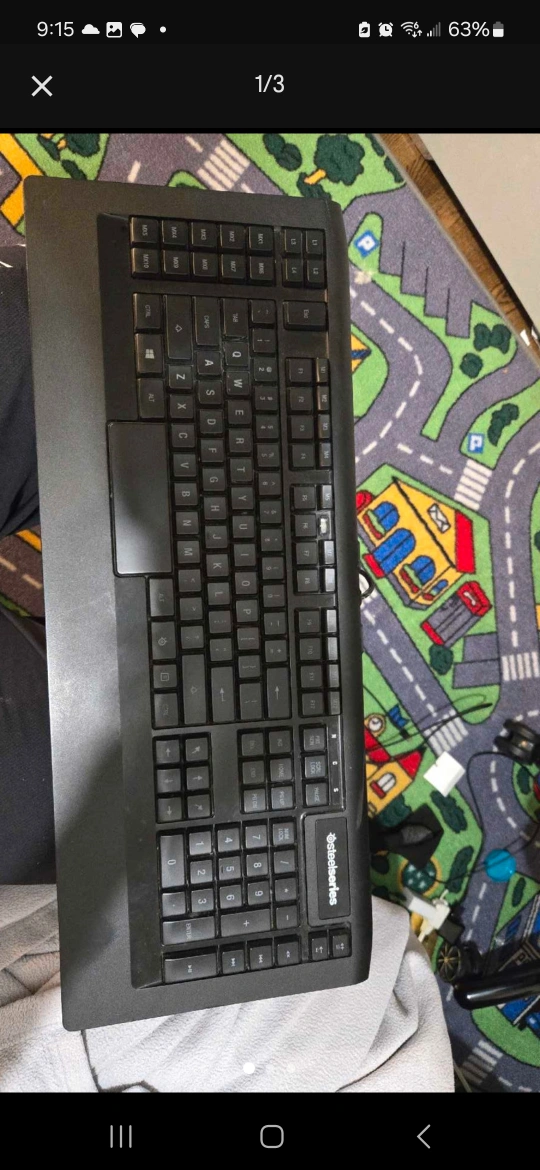 Wired USB keyboard. Black. Good condition. Includes cable. missing keycap